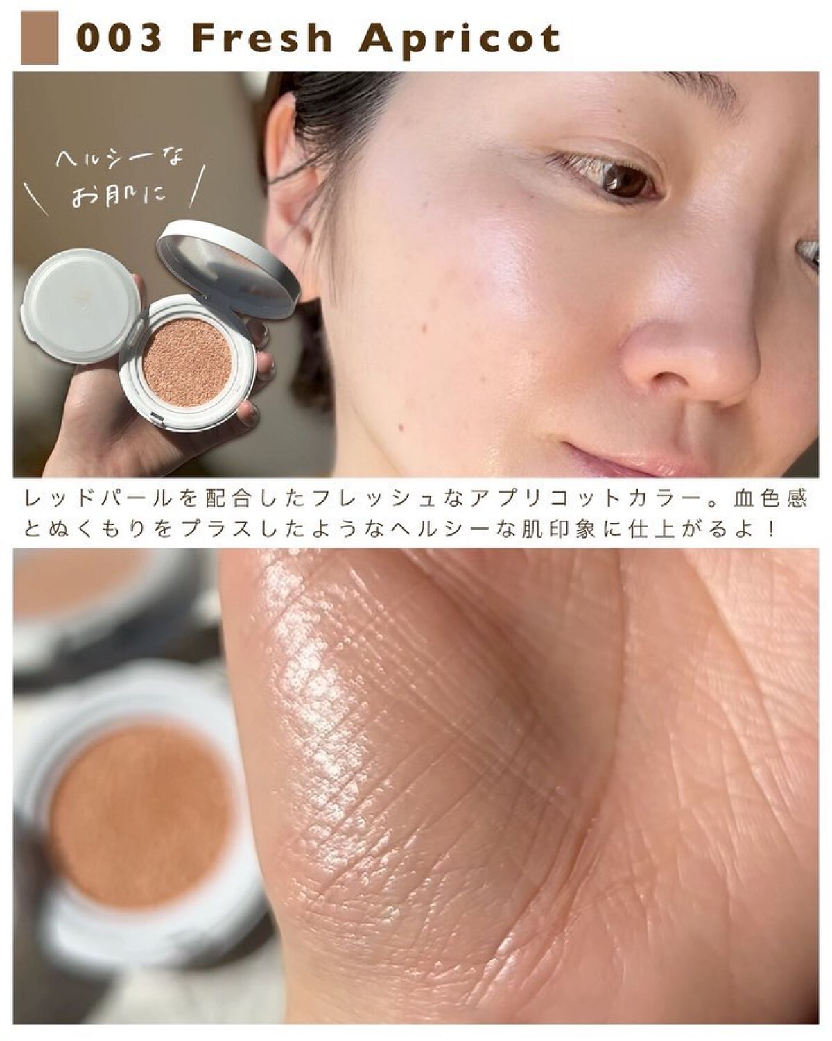 ぷにっとした弾力のある触り心地に、しっとりクリーミィなテクスチャー。 アイグロウジェムといえばこのカラーと言っても過言ではないくらい、初めましての方にもおすすめのカラーなんだとか✨ ちょっとオレンジ味もあるようなピンクベージュには繊細なラメがたっぷり、キラッキラと煌めきます。 でもここはさすがデコルテ、品があって透明感のあるラメ感なのでぎらつくこともなく、上品でうるっとしたアイメイクに。 そして肌馴染みの良いベージュにほんのりと感じるピンクが、じゅわっと滲み出るような血色感をプラスしてくれてこれまた可愛いんです…!ヌーディ過ぎない絶妙な色出しなので、これ単色で使っても充分すぎるくらい可愛い!時短にもなるのに抜け感が出てお洒落な雰囲気になれますよ〜! お値段も高過ぎないし、ラメの繊細な煌めきも美しいし、クリームみたいなテクスチャーなのによれにくいし、これは人気なのも納得だなあ。