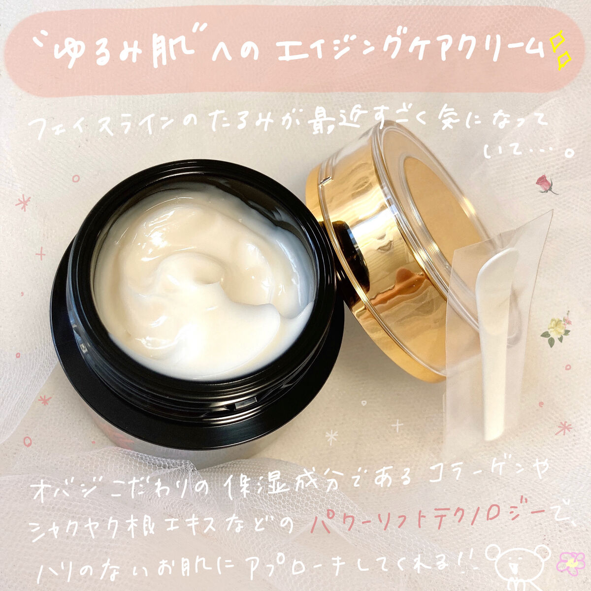 - 皮膚科学に基づいたオバジから。 革新のクリーム×塗り方メソッドの新提案で、潤って、ハリ・弾力あふれる肌へ ・パワーリフトテクノロジー オバジこだわりの保湿成分が、肌にうるおいとハリを与えます ・研究を重ねた独自成分配合 ・ディープターゲットデリバリー® 角質層に奥深くまで浸透させる、高浸透技術。 ・テクスチャー 濃厚な使い心地のクリームです。形状記憶させるようになじませ、ハリ・弾力のあふれる肌へ!