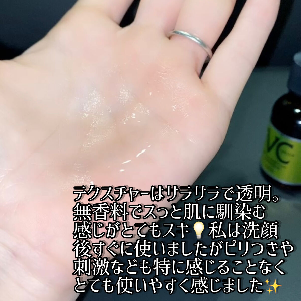 | 匂いも全くと言っていいほどなく、ビタミン系のスキンケアにしてはかなりクセがない商品だと思います。 | 詳細を見る | |