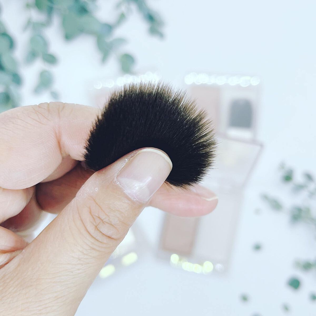 スティックタイプは手が汚れにくいので、手軽に使えますね🤔 こちらのファンデーションはブラシと一体型なので、ブラシを無くしたり落としたりしないのも嬉しいポイントです。 花柄かな?と思ったら、肉球ブラシなんですって🐈 ネコちゃんの手のひらをペタペタしてると思うと、思わず頬が綻んじゃいますね。 スティック状なのでくるくると気になる部分に塗っては伸ばし塗っては伸ばし、と好みの厚みを調節しやすいと思います。