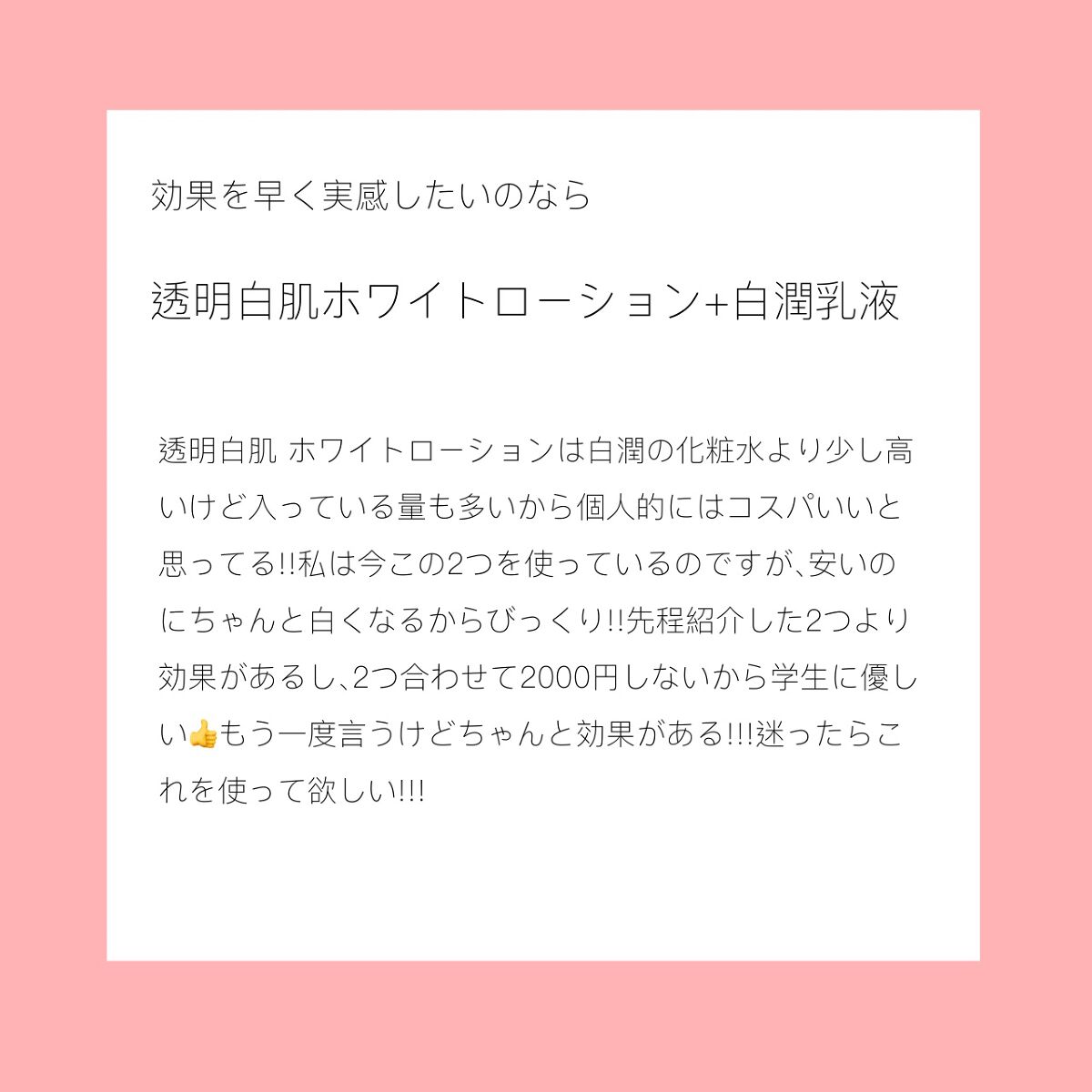 プチプラなのに超優秀!! 肌白くしたいならまずはこれ使って欲しい👍 真っ黒日焼け肌だったのですがちゃんと効果を感じられました!! 即効白くなるわけではありませんが確実にだんだん白くなってる!! プチプラなので試しに買ってみるのもおすすめ!!