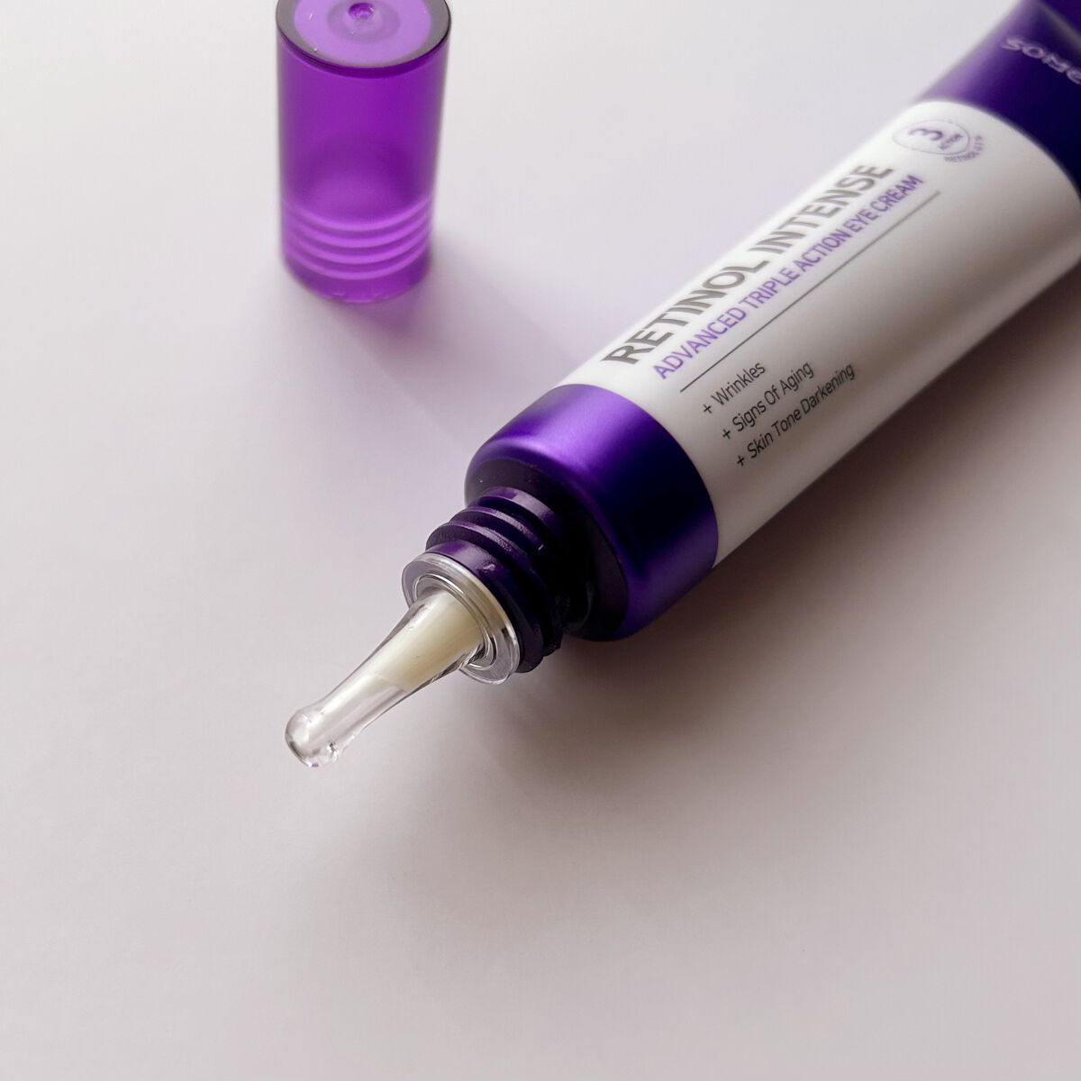 レチノール0.1%+グルタチオン配合で目のくま・小じわを集中ケア 目元以外にも口元や眉間などにも使えて、さまざまなシワ悩みにアプローチしてくれます💜 柔らかくよく伸びるクリームで、結構しっとり感があるような使用感 べたつかずしっかり保湿される使用感なのが嬉しいです💕 この紫パケが特徴的 それぞれの肌に合わせて、使用量などを調整して使うのが大切かなと思います。