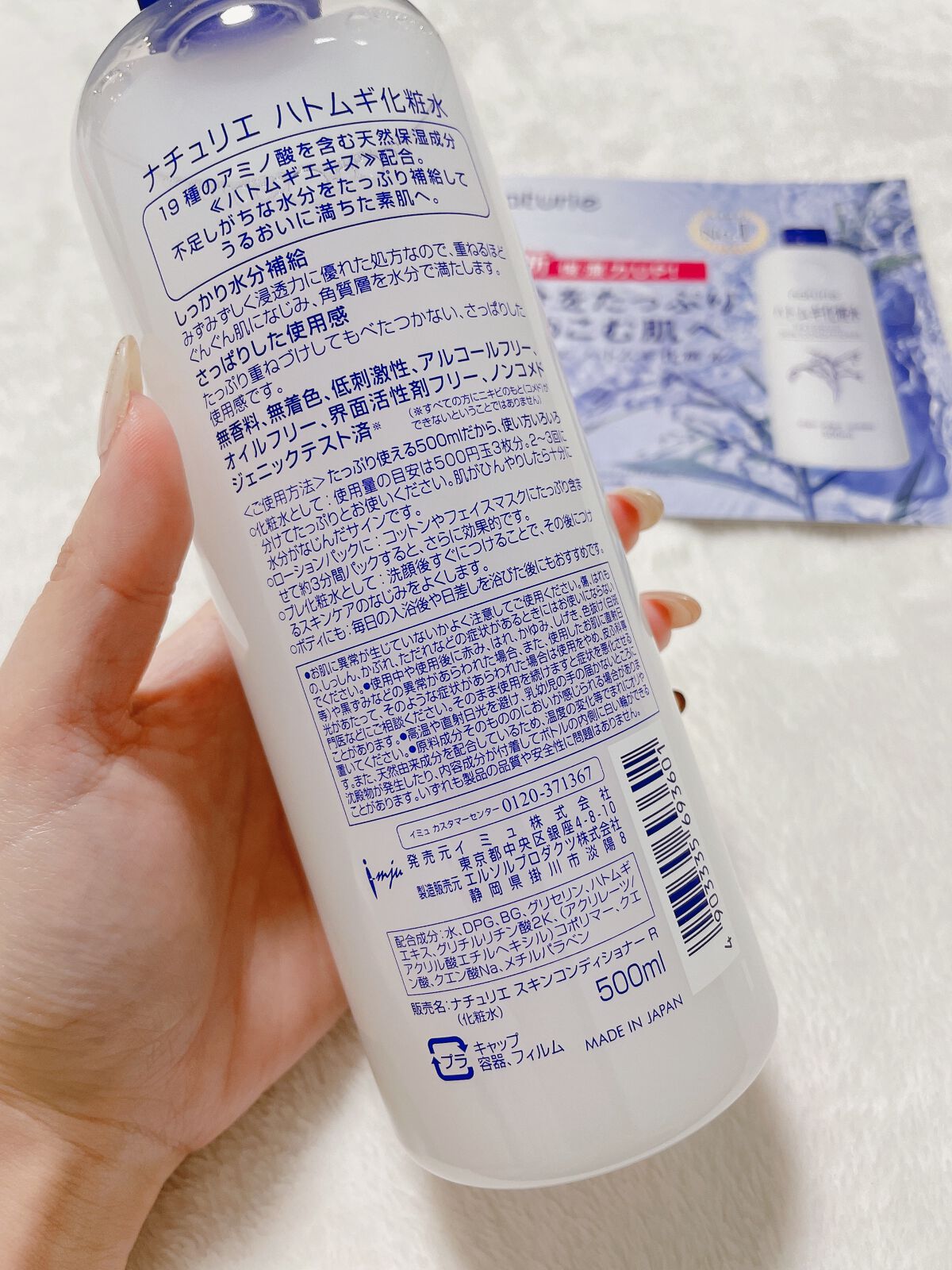 - <通常サイズ 500ml> 水、DPG、BG、グリセリン、ハトムギエキス、グリチルリチン酸2K、(スチレン/VP)コポリマー、クエン酸、クエン酸Na、メチルパラベン <500ml+ 限定ムーミンデザインボトル> 水、DPG、BG、グリセリン、ハトムギエキス、グリチルリチン酸2K、(スチレン/VP)コポリマー、クエン酸、クエン酸Na、メチルパラベン <詰め替えタイプ 480ml> 水、DPG、BG、グリセリン、ハトムギエキス、グリチルリチン酸2K、(スチレン/VP)コポリマー、クエン酸、クエン酸Na、メチルパラベン <旧製品> BG、グリセリン、メチルパラベン、エタノール、グリチルリチン酸2K、ハトムギエキス、DPG、クエン酸Na、プロピルパラベン、クエン酸、(スチレン/アクリレーツ)コポリマー、水 <限定ムーミンデザイン> 水、DPG、BG、グリセリン、ハトムギエキス、グリチルリチン酸2K、(スチレン/VP)コポリマー、クエン酸、クエン酸Na、メチルパラベン