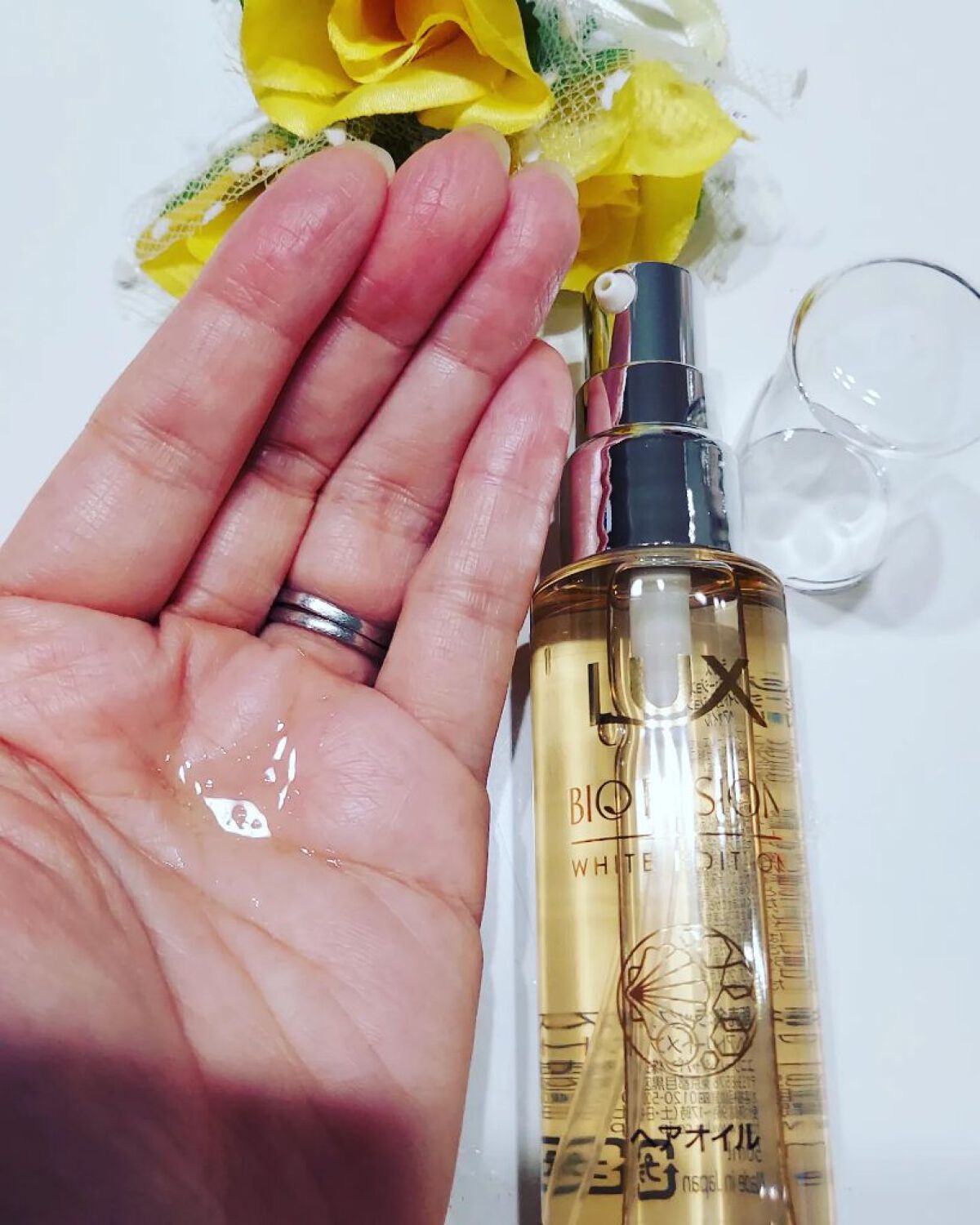 とってもさらさらしたオイルっぽくないテクスチャーでした。 香りがとっても私好み!癒される香りなんです。 髪の毛につけてみると、さらさらしているので、馴染みが良いです。