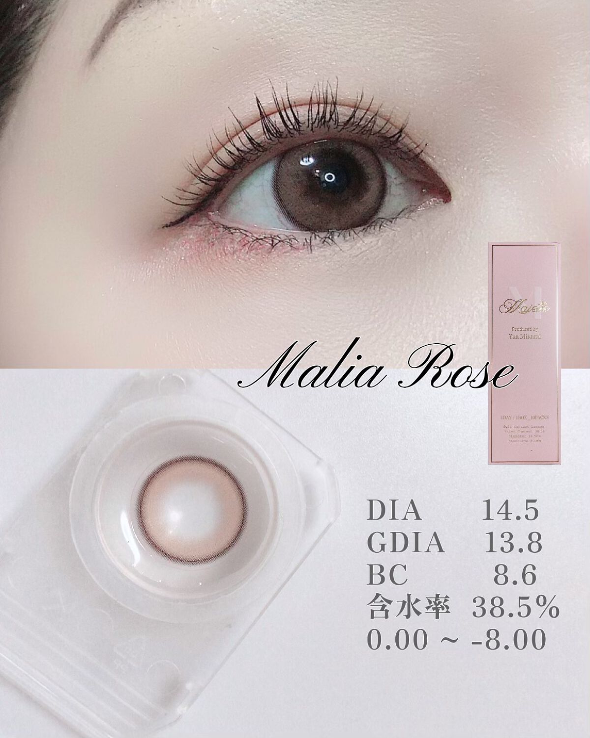 くっきり太フチで大きく盛れる! MaJetteから新色が誕生🌹🤍 くっきりとしたダークブラウンの太フチにさり気ない。本当にすこーしのピンクが入ってなんともまぁフェミニンなカラコンに💘 長時間スマホ・PCを見る人にも目のストレスを軽減してくれるからドライアイのわたしでも快適が続きやすい🩵