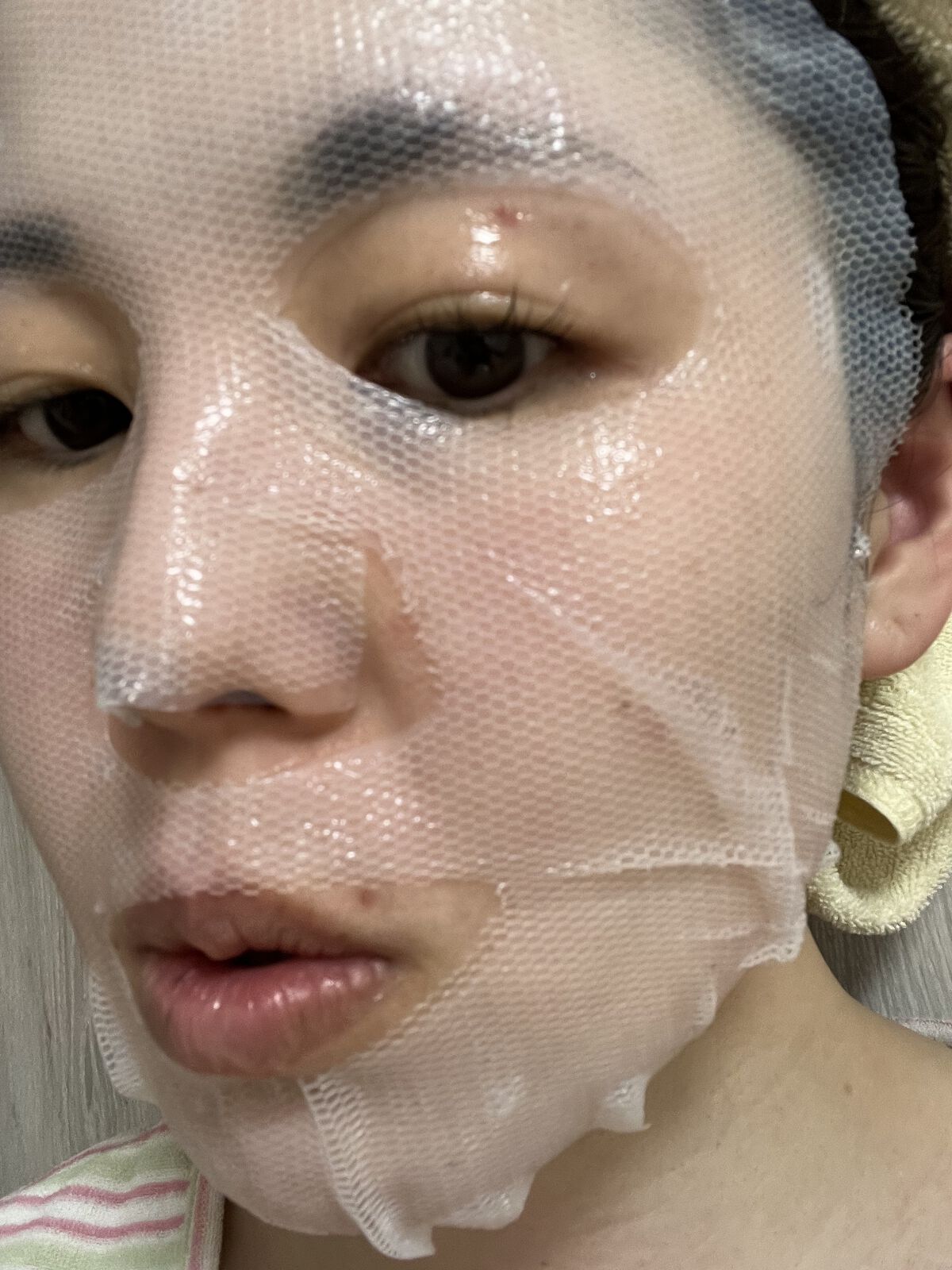 保湿することで透明感を期待できる、 というタイプだそうで 美容液がジュレっぽくて結構しっとり感が強め。 美容液は割とサラッとしていて このタイプはシートをつけていても 落ちてこないので快適でした。 保湿系のタイプのものだと しっとり感がかなり強めなので その分シートが落ちてきやすいのが残念、、。
