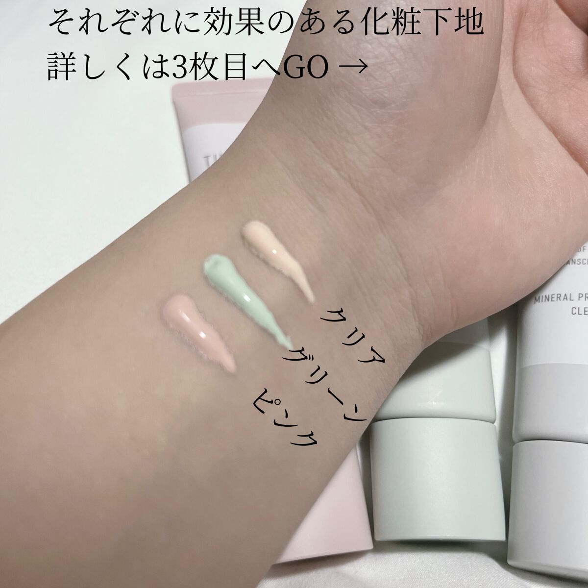 肌荒れケア(ミドリ) 肌荒れによる赤みをカバーして透ける白肌 どの色も肌のトーンアップと保湿力があって乾燥しにくくなるし透明感のある肌になります! それぞれ自分の悩みに合った化粧下地を使うことができるのでうれしいです!