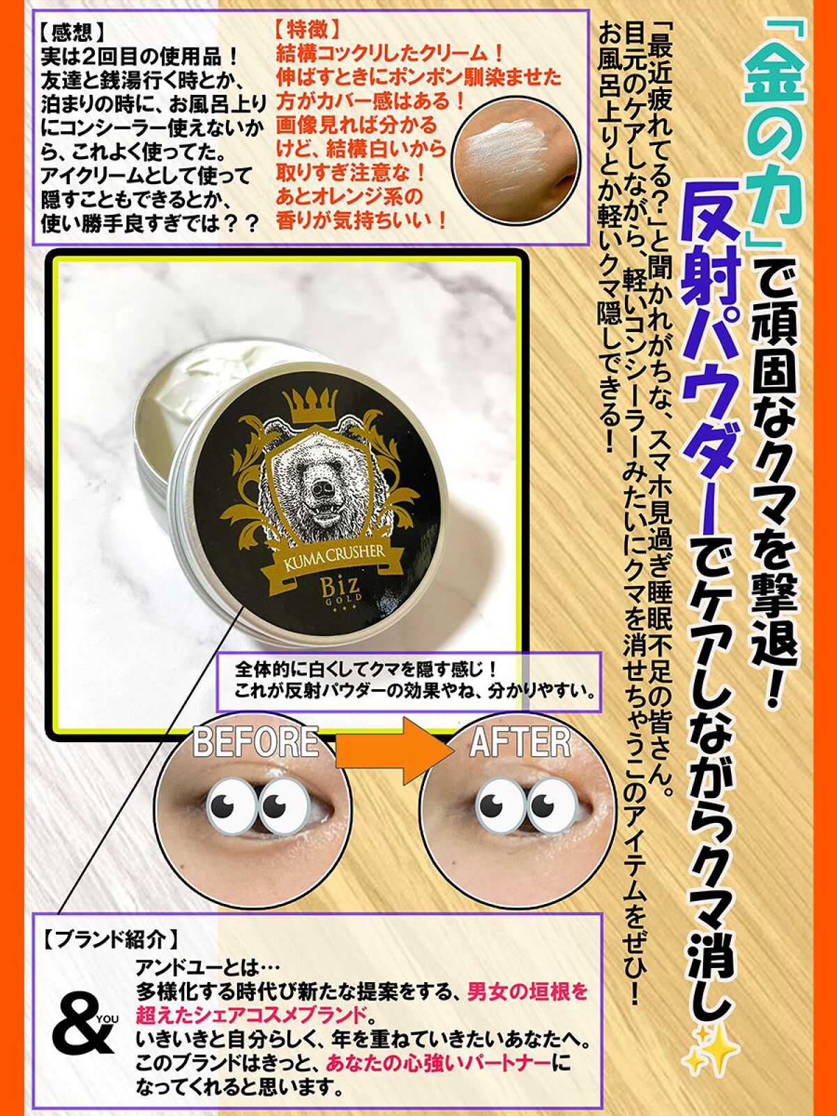 ビズゴールド・王様のクマクラッシャーAmazonで1位で、TVの有吉ジャポンで錦鯉さんに紹介された人気アイテム、アンドユー様のビズゴールド王様のクマクラッシャーのご紹介です。ブランド:アンドユー商品名:ビズゴールド 王様のクマクラッシャー容量...