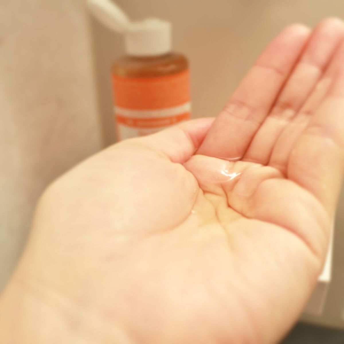 ドクターブロナーの【マジックソープ シトラスオレンジ】は、1本で顔もボディも洗える、マルチソープ🥰 これなんとメイクも落とせるから驚き!私は軽いメイクの日に使ってるけどちゃんとメイク汚れ落とせるよ😆 天然のエッセンシャルオイルのみを使った、みずみずしい柑橘の香りも素敵なの🍊✨
