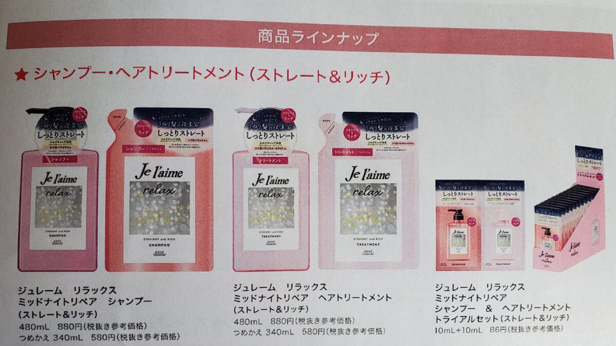 Je l'aime リラックス ミッドナイトリペア シャンプー/ヘアトリートメント (ストレート&リッチ) | 968円 |