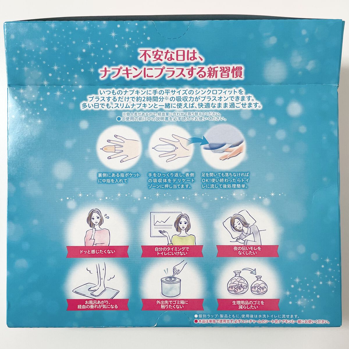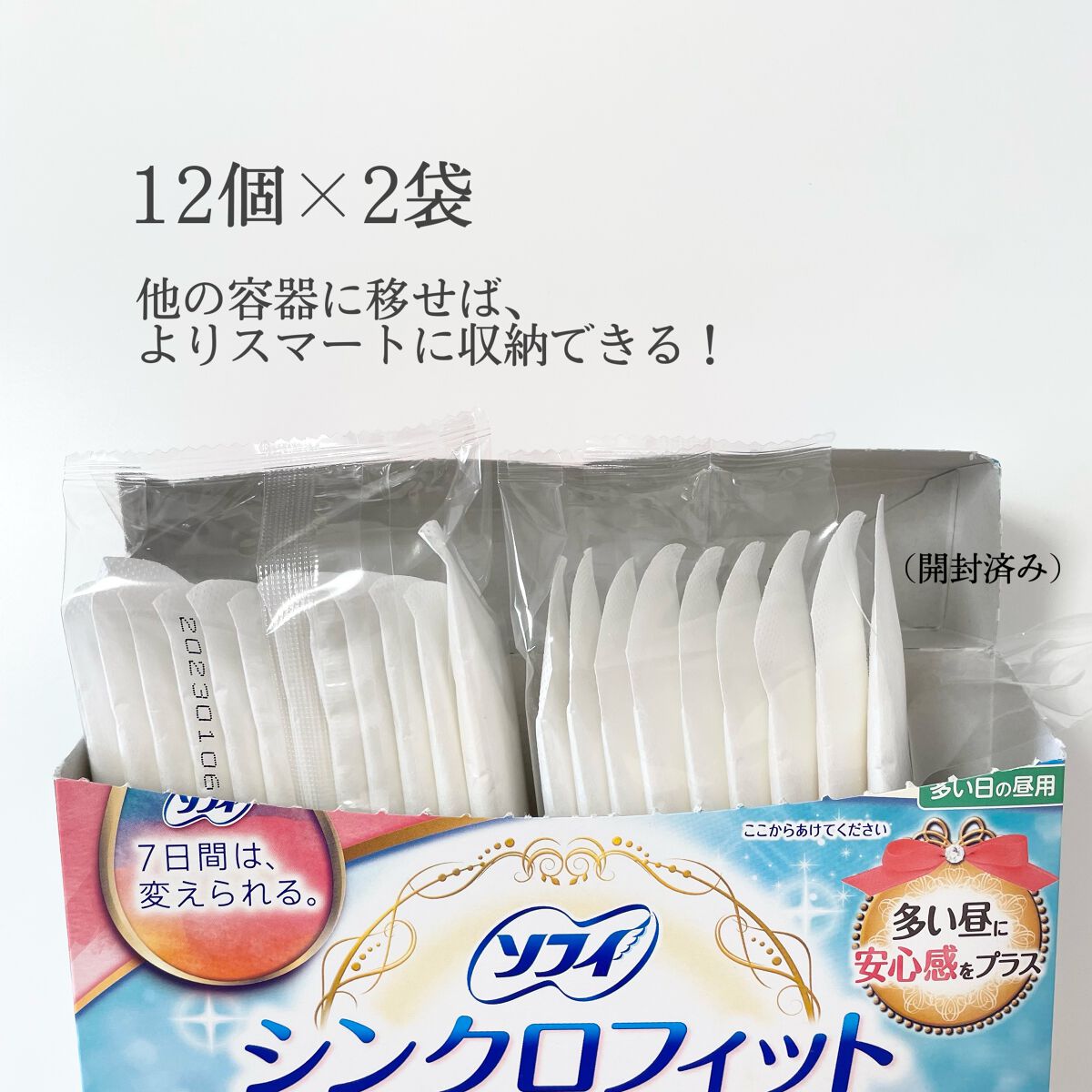 仕事で手が開かない時や多い日の就寝時 いい仕事してくれます✨ こちらとアクティブな時に使うナプキンがあると経血がもれる心配がぐんと減るので安心します😮💨 救世主✨ ソフィ シンクロフィット 多い日の昼用