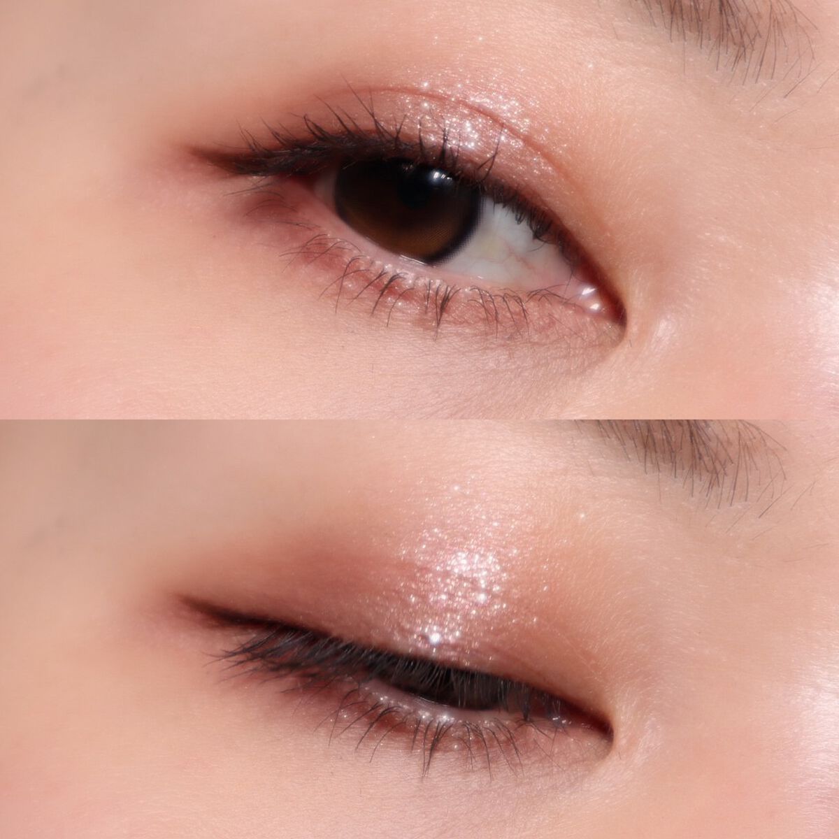 目元が明るくなるし、透明感も出て、垢抜ける感じもあるので 今となってはここのラメ忘れるとかなりゲンナリする… チラっチラ感がほんとにかわいいので ロングセラー品になりつつあると思いますが、 今でもやっぱりかなりすき… シルバーとかブルーとか強めだと ちょっと浮くしやりすぎ感が出るので このフーミーのメリンダベージュとか、 ホワイト系のラメとか、あまり色として 主張しないものがおすすめ…