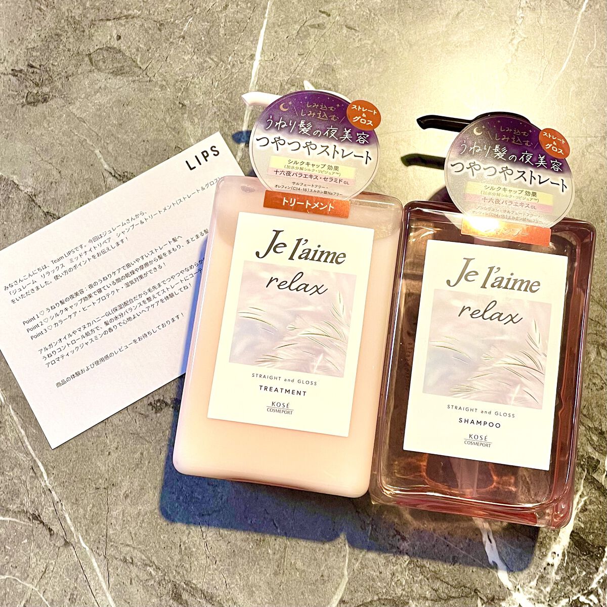 Je l'aime リラックス ミッドナイトリペア シャンプー/ヘアトリートメント (ストレート&リッチ) | 968円 |