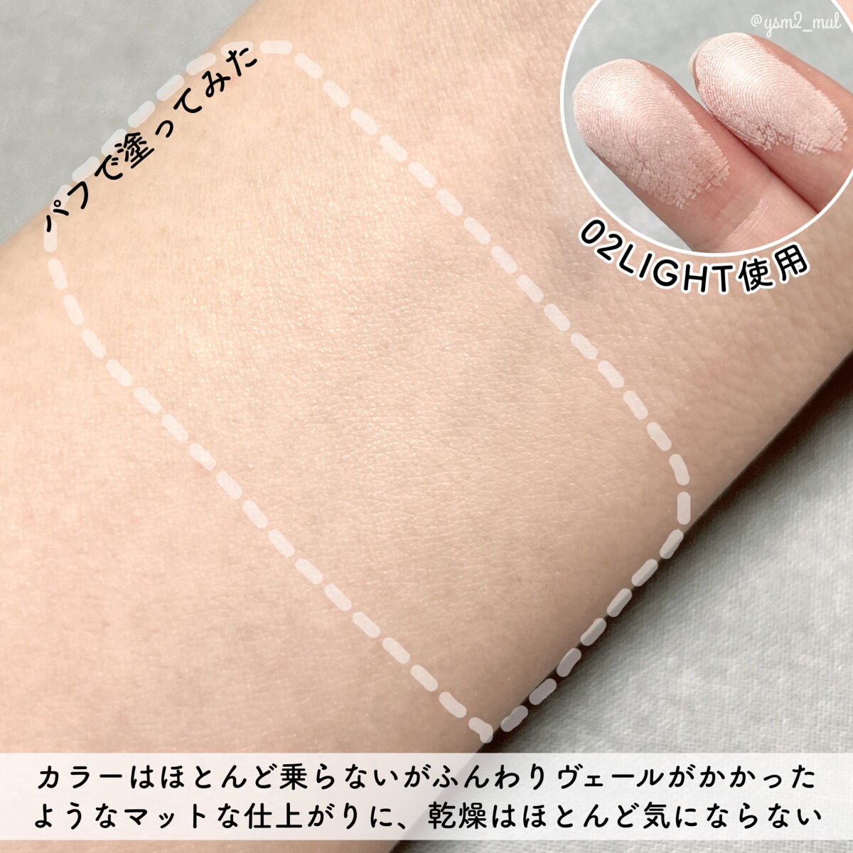 滑らかでマットな質感のパウダー✨ きめ細かくサラサラに仕上げてくれるよ✨ 程よくカバー力はあるけど厚塗りには見えない素肌感もしっかり残してくれるよ🥰 乾燥しにくくメイク崩れもしにくかった🔆 密着力もあるからお直しにもオススメだよ🤍