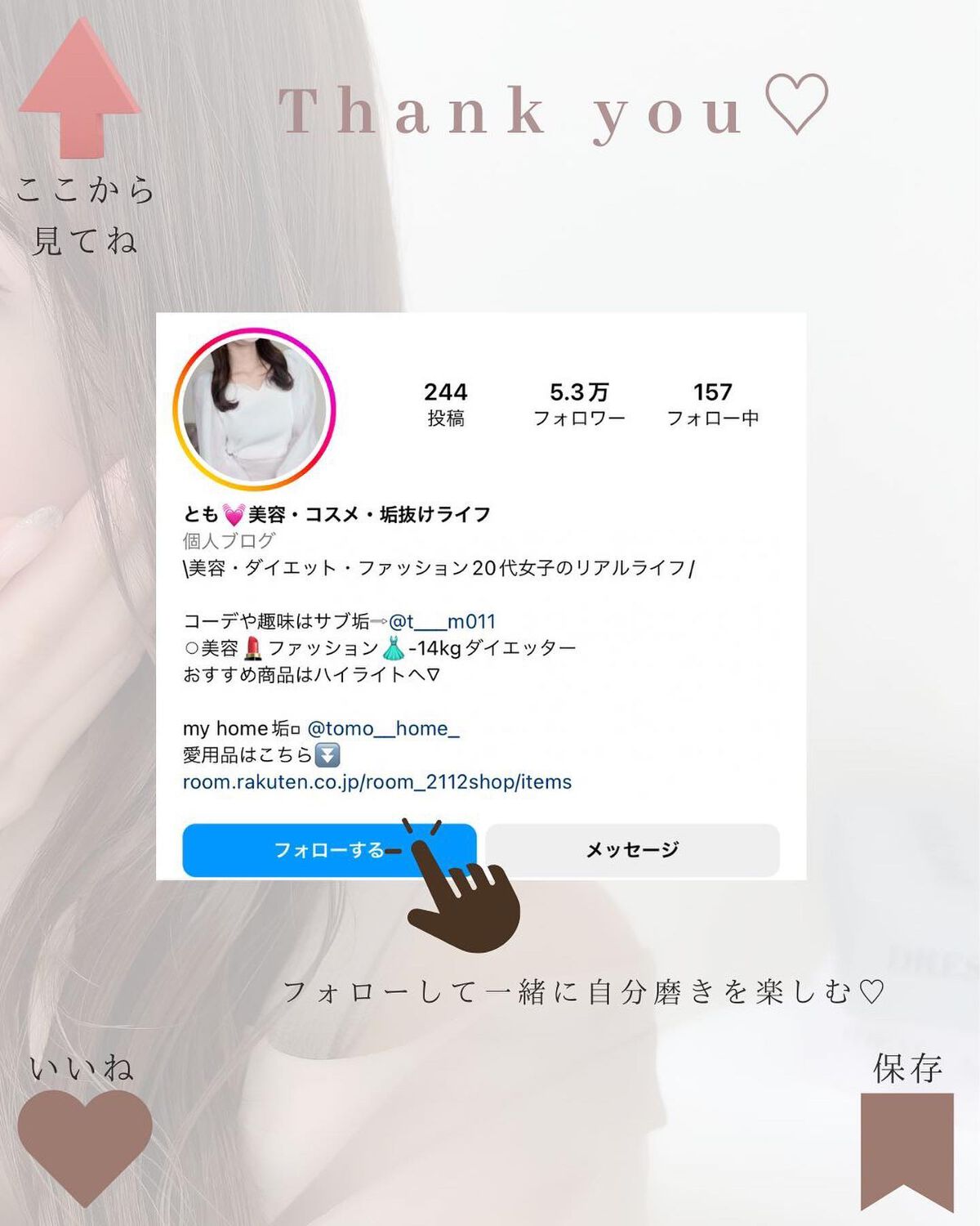 愛用品はプロフ楽天room⇨@tomo__happylife……………………………………………………………垢抜ける為にやったことダイエットについては過去投稿に沢山載せてます✨ムダ毛ケアに使ってる光美容器は6/16日の投稿に詳しく載せてます♡そ...