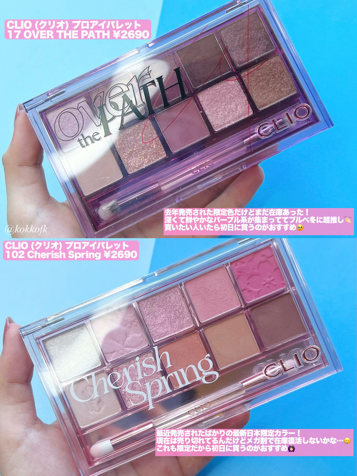 rom&nd────────────ベターザンパレット06 PEONY NUDE GARDEN (¥2900) rom&nd────────────ベターザンアイズ W03 Dry Strawberry (¥1569) HOLIKA HOLIKA────────────マイフェブムードアイパレットMOONY (¥2050) HOLIKA HOLIKA────────────マイフェブムードアイパレットPINK OLOGY (¥2050) CLIO────────────プロ アイ パレット13 PICNIC BY THE SUNSET (¥2390) PERIPERA────────────オール テイク ムード パレット04 MUTEFUL ROSE (¥1590) PERIPERA────────────オール テイク ムード パレット09 MOONLIKE LAVENDER PINK (¥1590) PERIPERA────────────インク ポケット シャドウ パレット05 TOUCHING TARO STARS (¥1190)
