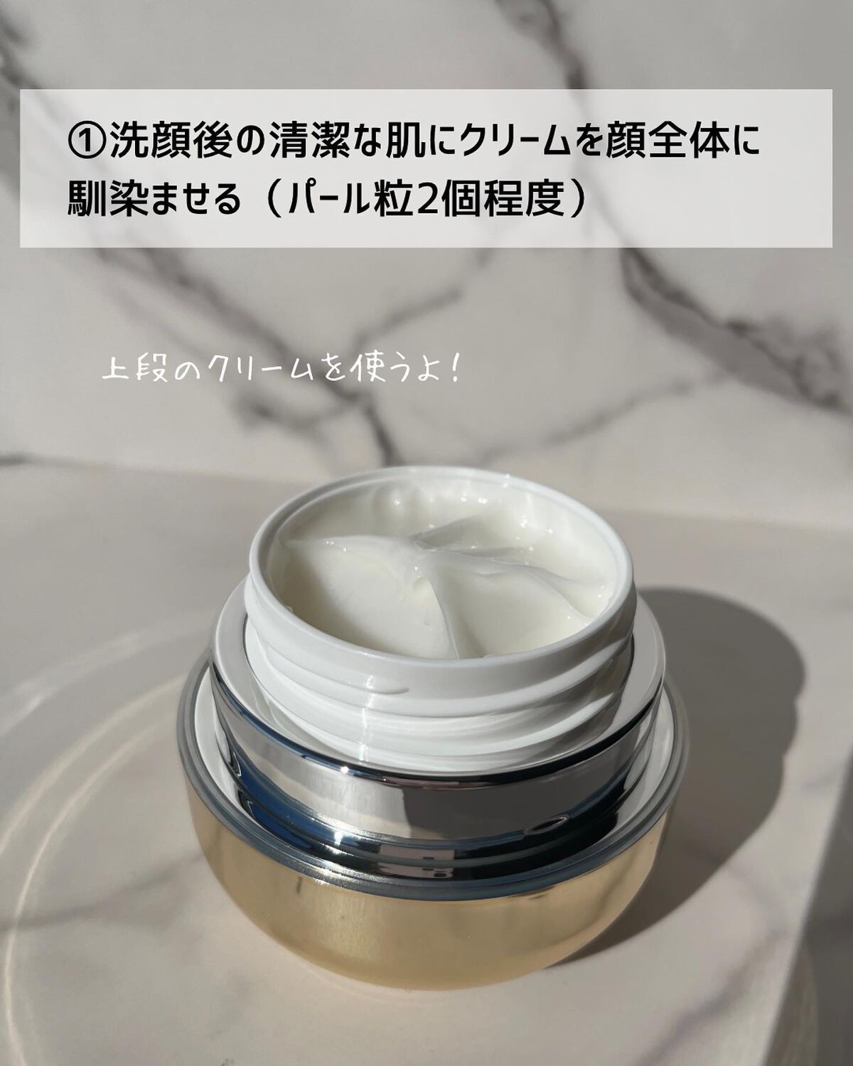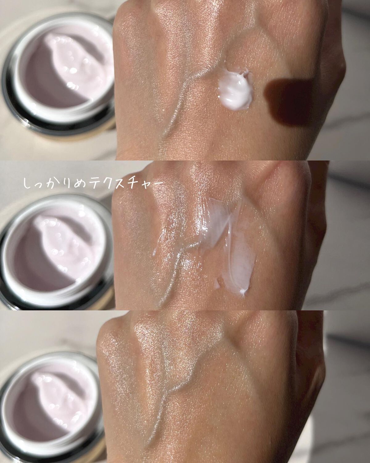 | テクスチャーはとろみのあるリッチなクリームで、肌にのせるととろけるように広がります。 | 詳細を見る | ||