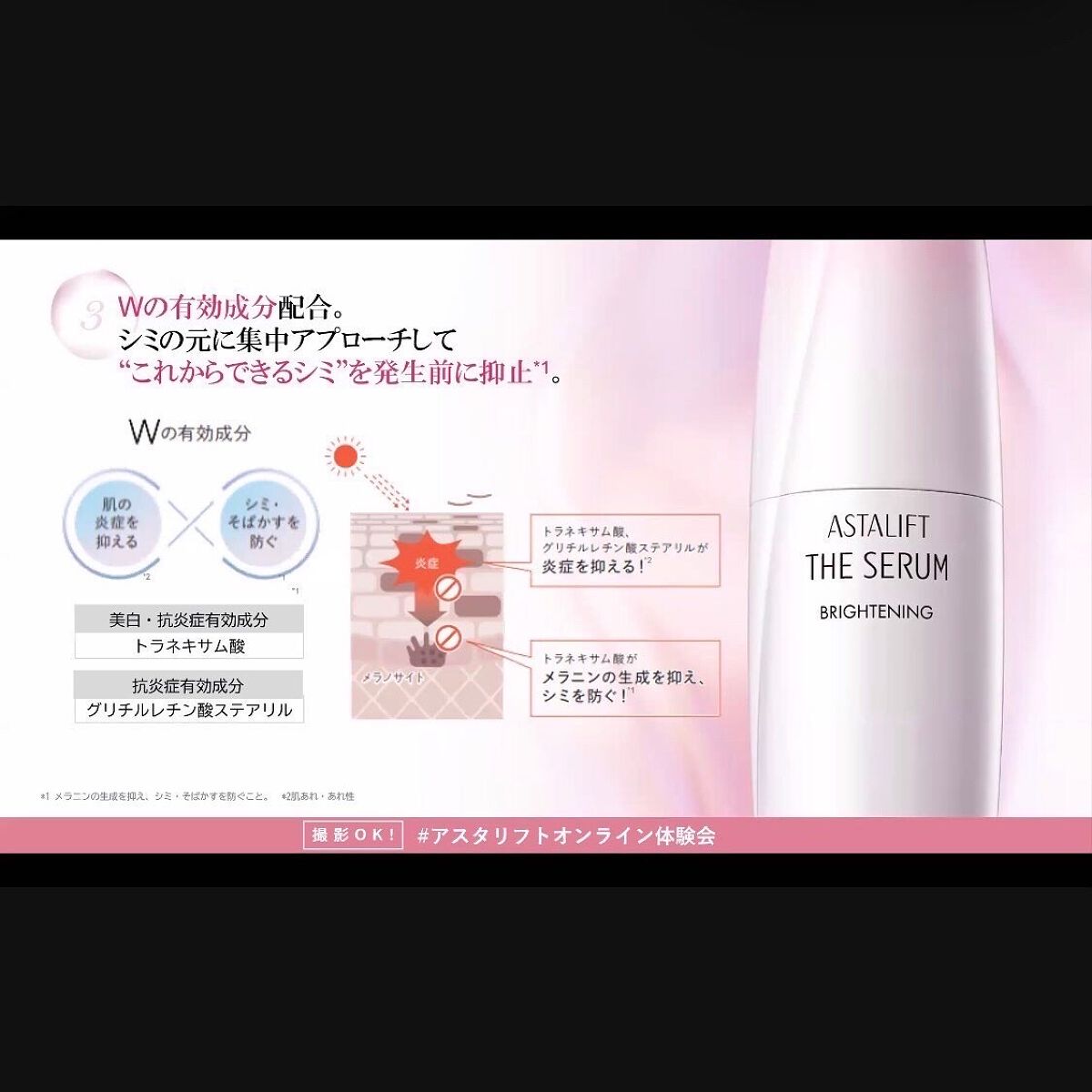 - 【医薬部外品】 シミの真の発生源「メラノサイト幹細胞」へ、独自の浸透型リポソームとWの有効成分を届け、メラノサイトを増やさない新しいシミケア。今までにない先制アプローチで、シミを「作らせない」、「増やさない」、「濃くしない」「薄くなる」まで、徹底的にシミをケアします。