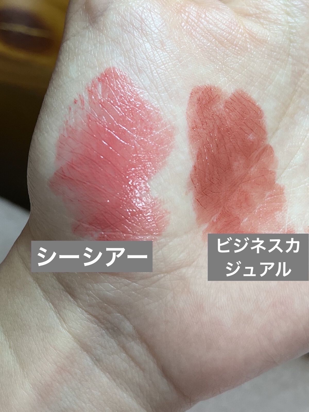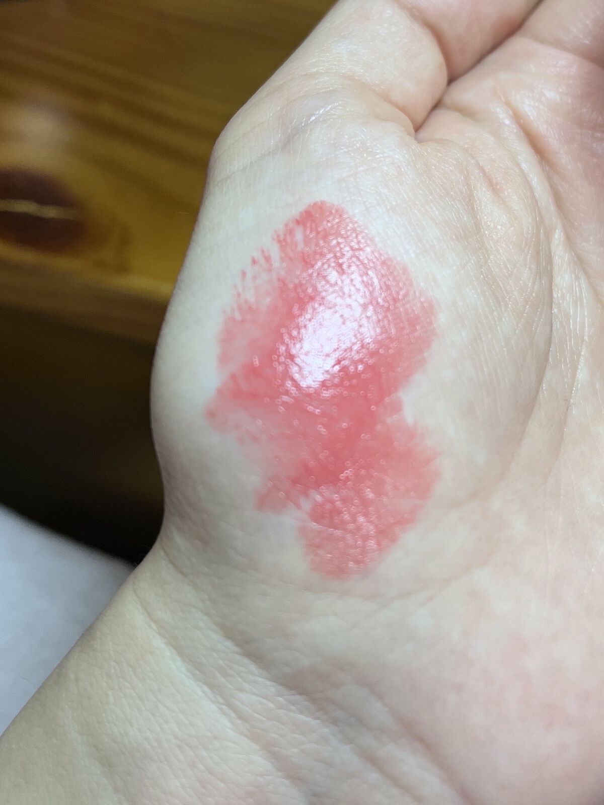 見た目はコーラルベージュだったので、使うまでは「似た色はたくさんあるし..かわいいけどね〜」くらいの認識だったのですが、私の唇に使って見たら思ったより可愛いピンク色になりました🎀💕💓💗 するっと塗りやすく、保湿力もしっかり感じます🙆🏻♀️ ヒアルロン酸やローズヒップオイルが配合されてて感想を防いでくれるようです。 デパコスリップで唇ベロベロになる民の私でも荒れずに使えているので、可愛い上に実用的で最高なリップです。
