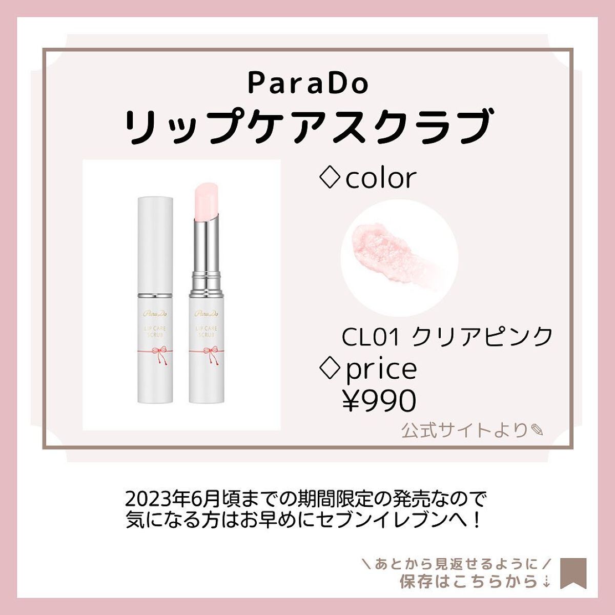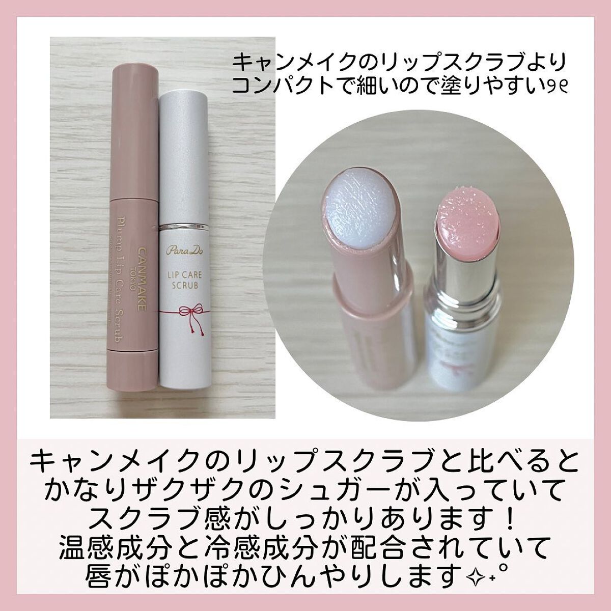 🩷パラドゥリップケアスクラブCL01クリアピンク🩷限定で発売されたスクラブ入りのリップです💄💕砂糖のスクラブで優しく唇の角質をケアできます😚スクラブは控えめなので刺激も少なく、日中にリップクリーム代わりにも使えます🙌🏻清涼感もあり、塗った直後...