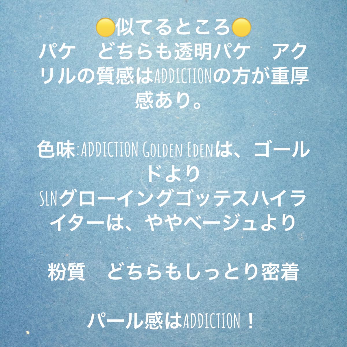 はじめまして🙇🏻♀️イエローベースのハイライトが大好きで、長年探し求めていたカラーだ!と目にとまり、参考にさせて頂きました🥹ྀི 恐れ入りますが、SLNのハイライターはどちらで購入されていますか? 是非購入しようと、ネットであちこち探したのですがどこにも商品見つからず🤦🏻♀️差し支えなければお伺いさせて下さい🥺♥