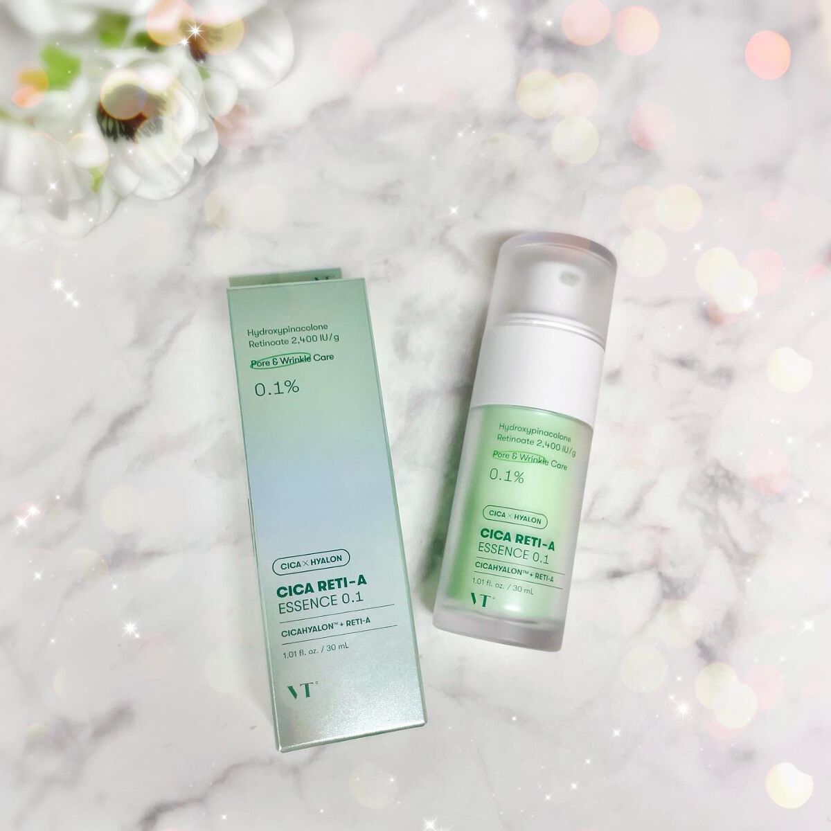 VTCICAレチAエッセンス0.5で、毛穴レスなキメ肌を目指す✨私はレチノールリピ使いなので「中レベル」の0.5%です。私の使用感・効果テクスチャー:みずみずしくて、肌になじませるとべたつきがなくさっぱりとした使い心地がお気に入り。肌の変化:...