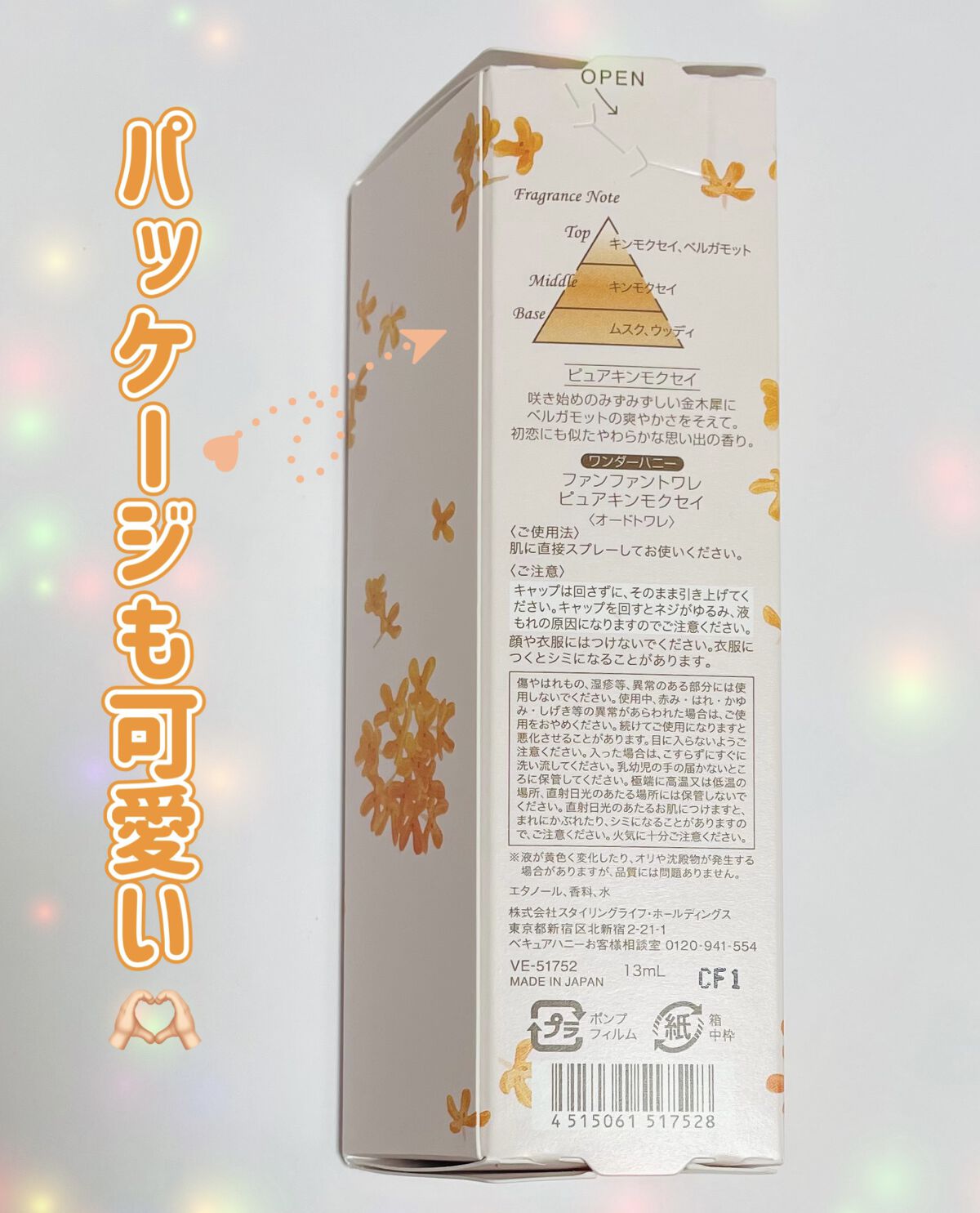 商品詳細情報VECUA Honey ワンダーハニー ファンファントワレ ピュアキンモクセイ