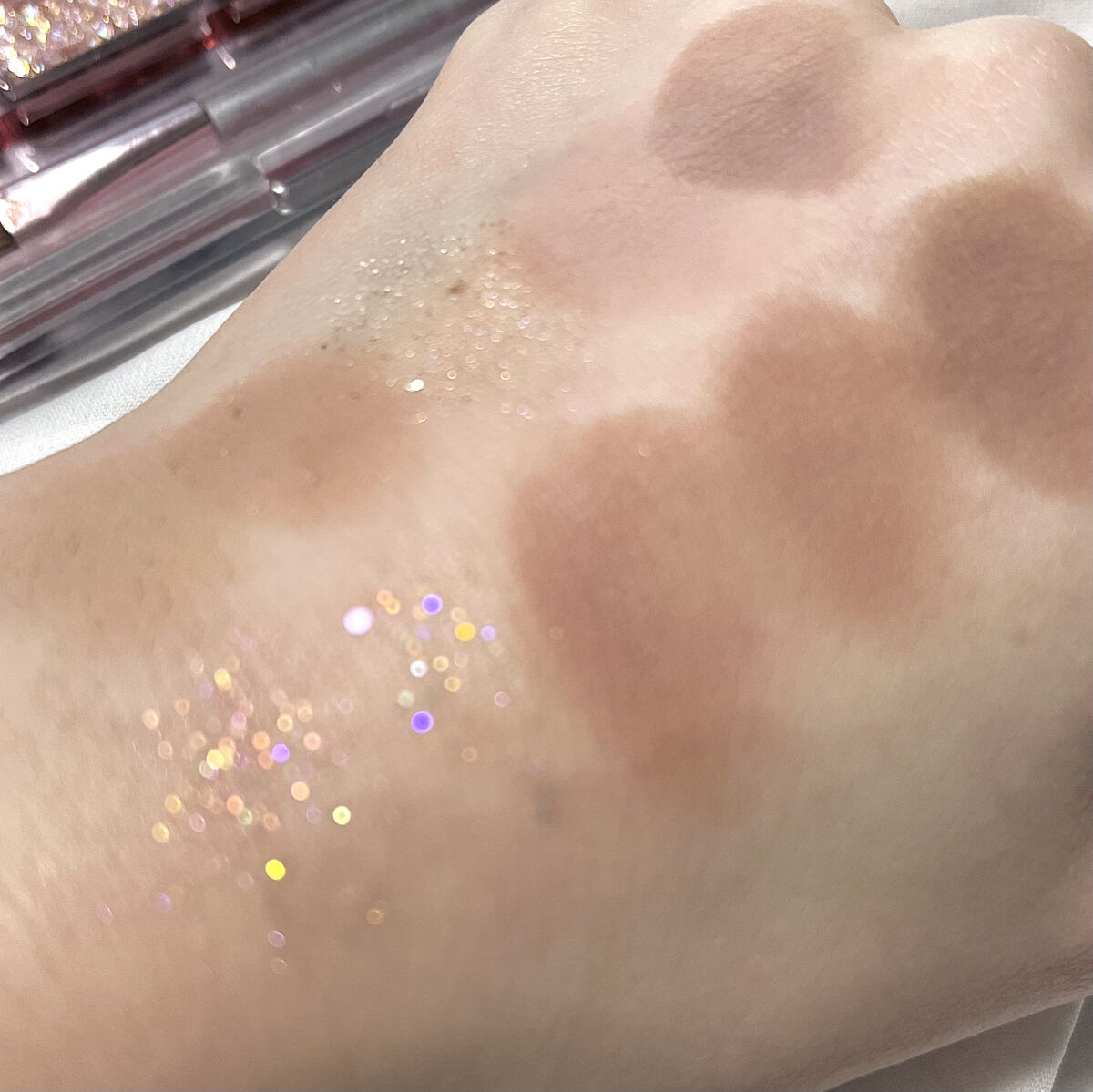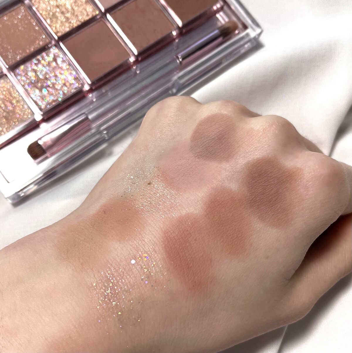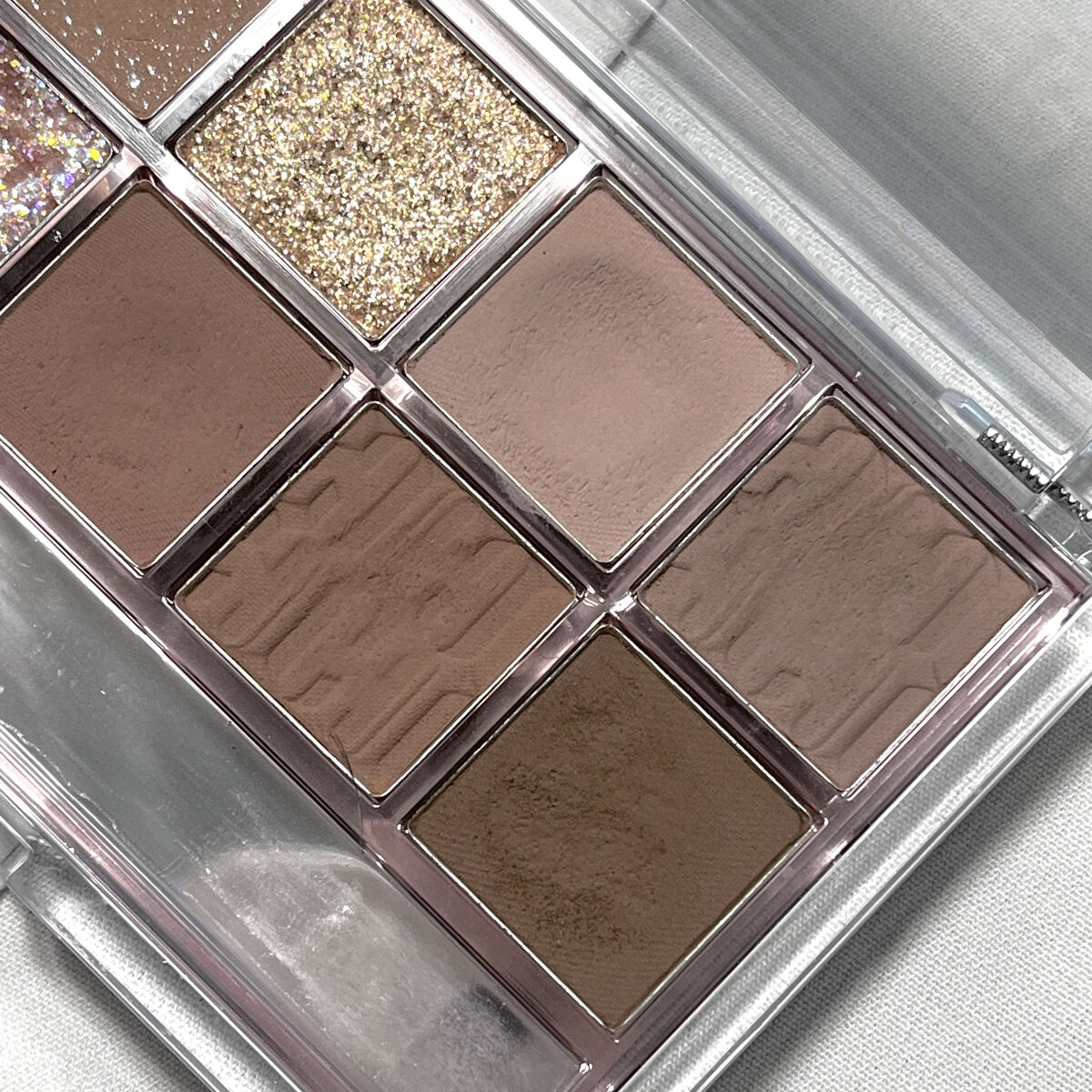 - ひとつのパレットにマット、シマー、グリッターなど多様な質感を贅沢に使用。塗る順序やカラーの組み合わせを変えるだけでデイリーメイクにも、特別な日のお出かけメイクにもできる優れもの。また粉飛びせず、まぶたにしっかり密着します。