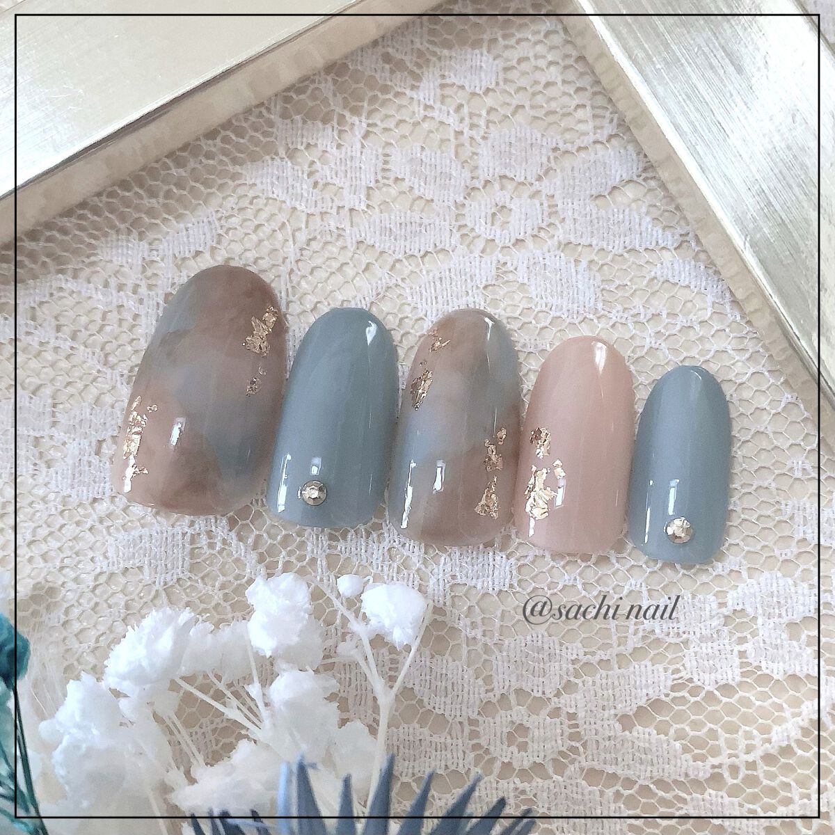 ワンカラーでも指ごとに色を変えるだけでオシャレに見えます💕 画像のようにゴールドラインとストーンを少し足すだけで華やかさがアップ🥰 何度かご紹介したことのあるスポンジで作るグラデーションです✨ スポンジを使うことで境目が綺麗に馴染んでくれます💕 アルミホイルの上でブラウンとトップコートを1:1くらいで混ぜたものを、トップコートのハケに取って3箇所に塗るだけ👌 事前に混ぜたものを塗ることで、爪の上でぼかすより簡単に出来ます💕 ベースカラーが乾く前に点置きしてぼかすことで綺麗にぼかせます✨ スピードが大事なので、使うポリッシュのキャップは全て開けておきましょう😊 天然石のラインはガタガタの方がより天然石っぽく見えるので、ラインを描くのが苦手な方でも大丈夫🙆♀️ 難しそうに見えて、やってみると意外と簡単に出来ます♡
