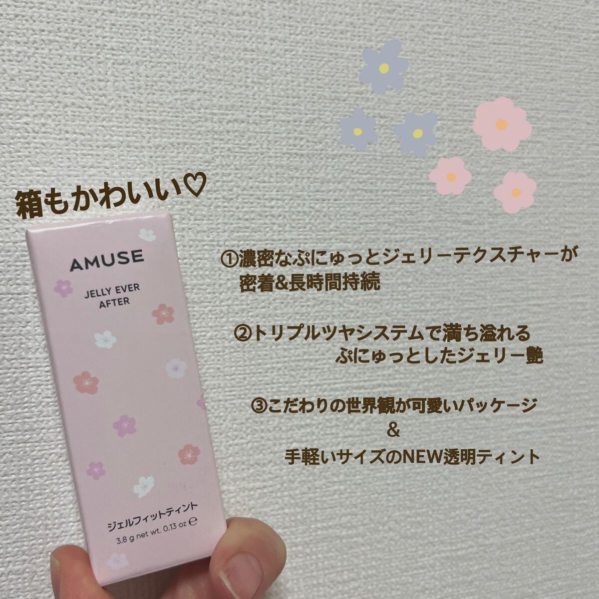 - 濃密なぷにゅっとジェリーが もっちり密着される 長時間持続のジェルフィットティント ☑ぷにゅっとジェリーがもっちり密着される長時間持続&新概念ジェルフィットテクスチャー* ☑8Shadesの透き通るぷにゅっとジェリー発色 ☑3重ツヤシステムで満たせれたぷにゅっとしたジェリーツヤ ☑ジェリーツヤ膜で保湿感ロック ☑手軽いサイズのNEW透明ティント&ぷにゅぷにゅジェリーデザイン ☑ヴィーガン処方 *)AMUSE内において