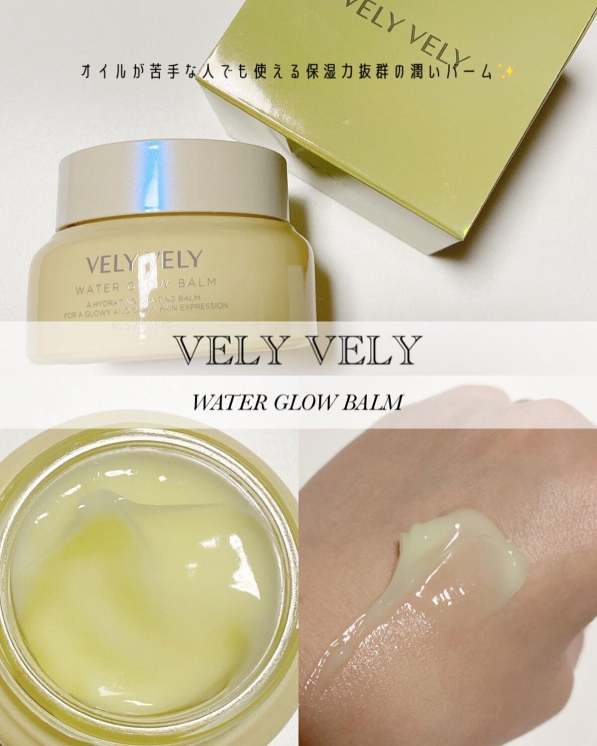 久しぶりにVELY VELYのアイテム使ったらやっぱり好きーってなった話💛 しっとりツヤ系クッションなのにカバー力が高い👏🏻 元から肌が綺麗です私!!って言えるぐらい厚塗り感もないし、乾燥しないところも大好き🍯♡ 元祖水光肌クリームと言えばWATER GLOW BALM!ぷるんぷるんの水分クリームで翌朝までお肌しっとり✨