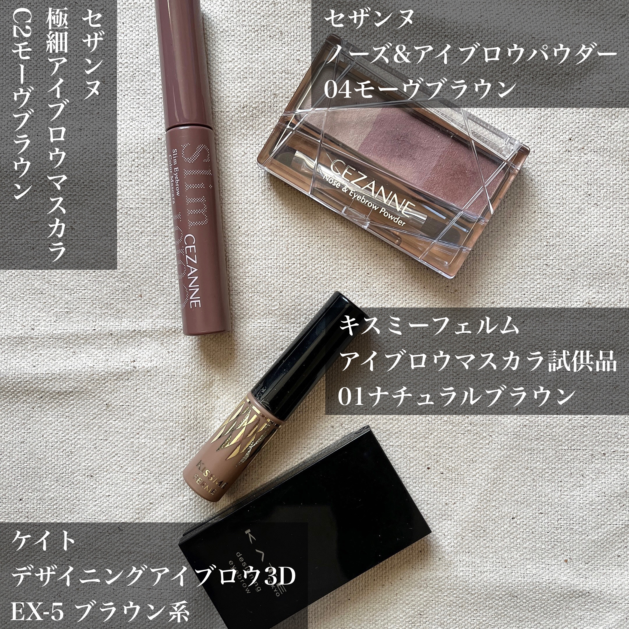 『本日のまゆげ』・・・イエベが施すモーブブラウンのような赤みがある眉毛✽セザンヌ ノーズ&アイブロウパウダー04 モーヴブラウン ¥638✽セザンヌ極細アイブロウマスカラC2 モーヴブラウン ¥528①ノーズ&アイブロウパウダーの右側の1番濃...