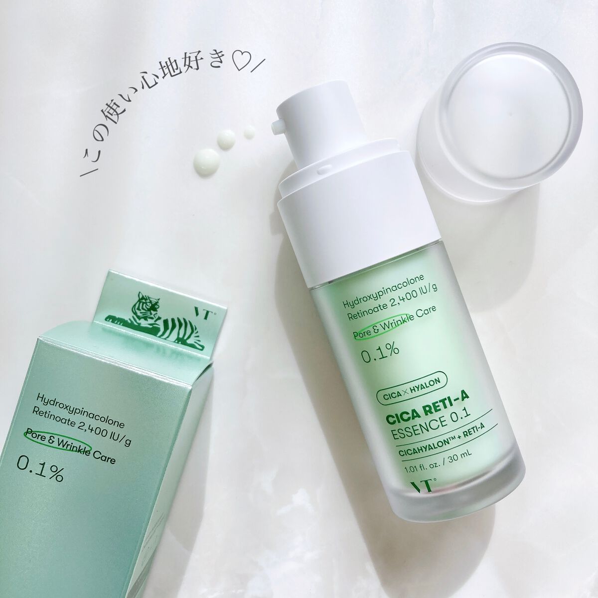 VTCICAレチAエッセンス0.5で、毛穴レスなキメ肌を目指す✨私はレチノールリピ使いなので「中レベル」の0.5%です。私の使用感・効果テクスチャー:みずみずしくて、肌になじませるとべたつきがなくさっぱりとした使い心地がお気に入り。肌の変化:...
