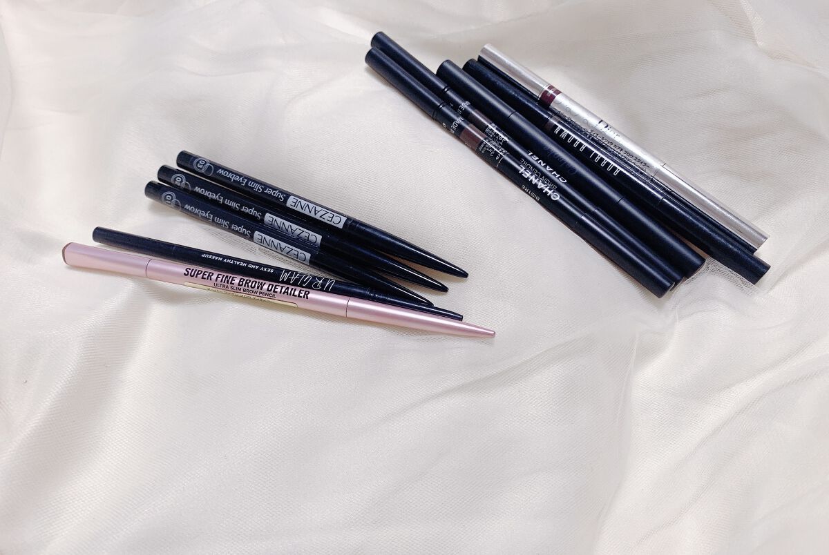 アイブロウに求めることは 細くて描きやすい ブラシがついてる 安い 色が選べる 以上4点です。 芯が細いけど柔らかくて 1番描きやすいのはURGLAM。普通のブラウンと赤みのあるブラウンをメイクの色に合わせて使い分けます。 パラドゥもかなり描きやすい。 コンビニコスメらしい無難な感じです。