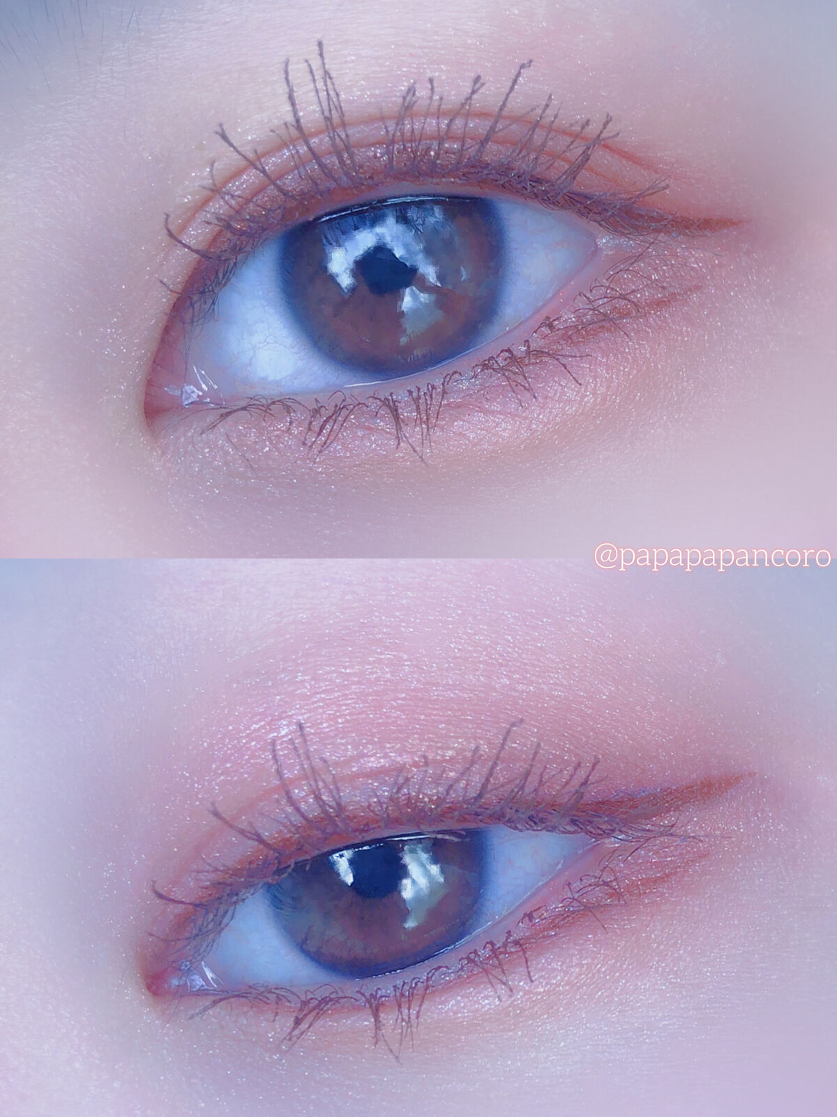 ぶどうカラーの赤紫でかなり秋っぽくおすすめです! 深めの色味に見えますが、薄く伸ばすと細かい多色ラメが際立ち透け感のあるぶどう色になります。 特にピンクラメが目立つので、ピンク系のメイクが好きな方に是非使って欲しいです♡ ラメが本当に本当にかわいいので、狭く濃いめに載せるよりも指で取って薄く広めに載せるのが私は好きです☺︎