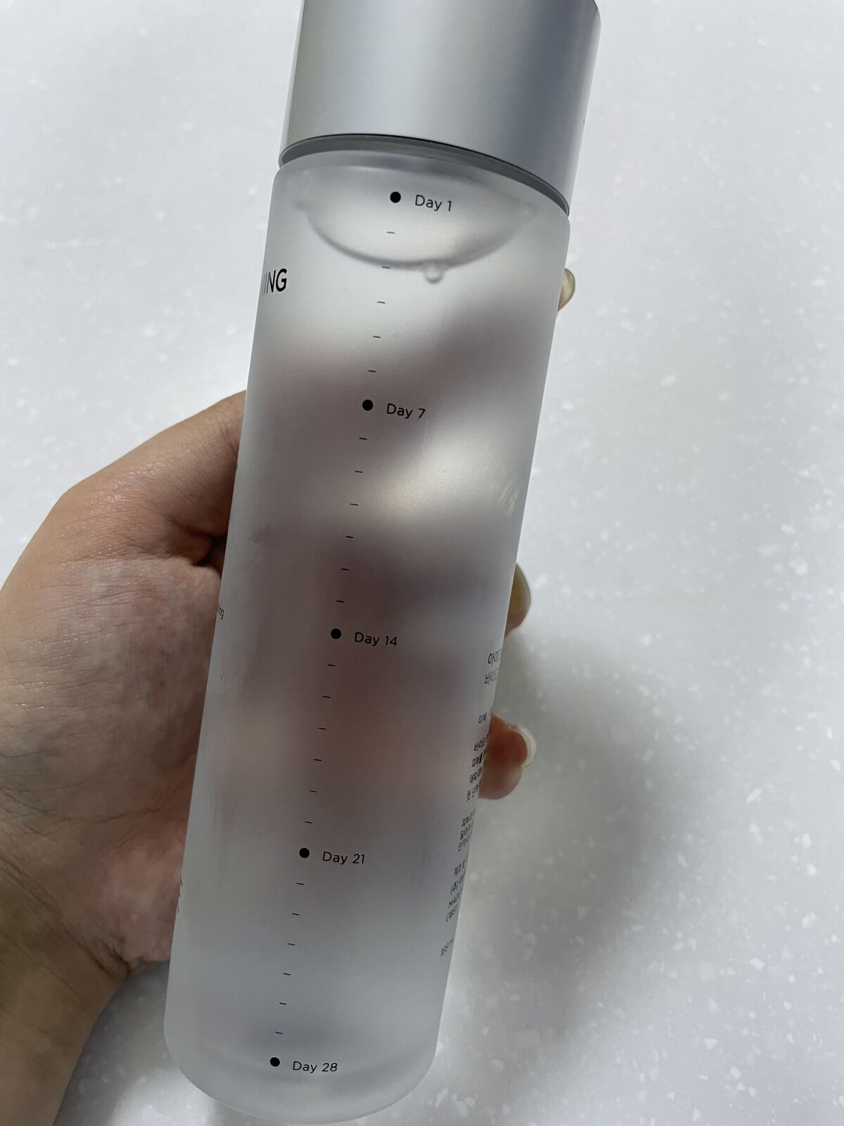 こちらは洗顔後、ファーストステップに使うエッセンスです。 軽く叩き込むように使用するとキメと透明感が出ると書いてあったので、コットンで叩き込むようになじませています。 エッセンスという名前がついているのですがとても軽く、軽い化粧水のような感じです。 肌にのせると外側から保湿されている感じではなく肌の内側に浸透して保湿されている感じがします。 -トーンアップ-くすみ解消-色素沈着解消-透明度アップなどの効果があるそうです!! 導入美容液なので、化粧水やアンプルは今使ってるそのまま使用できるので夏から乾燥する冬まで同じスキンケアを使用できます!! こちらはエッセンスですが軽いので肌に馴染みやすくみずみずしい、うるおいのある肌になります。