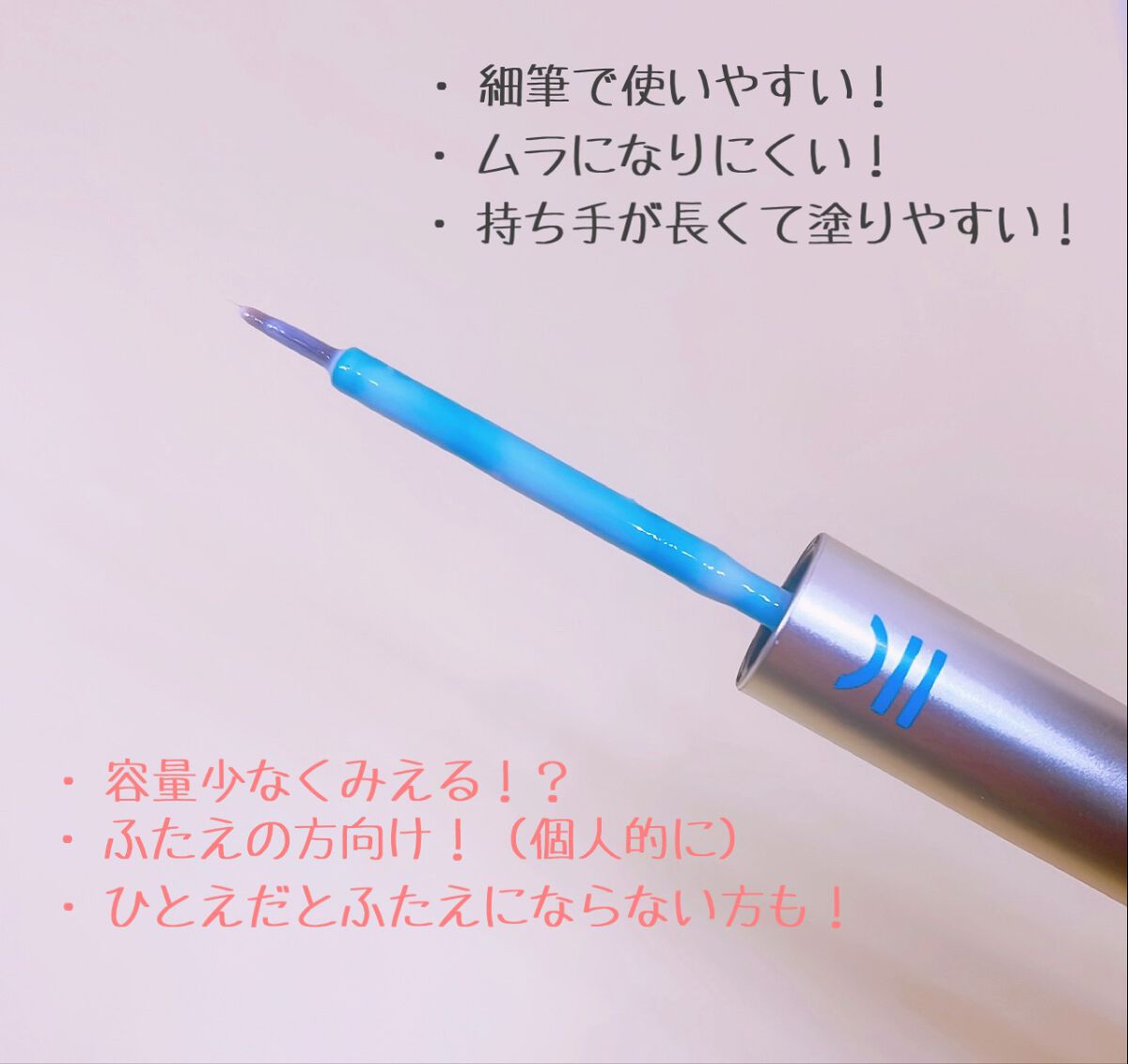 目力残す! わりとやわらかめのカラーなのにしっかり目力が残る!漆黒アイライナー卒業できるかも!? 描きやすすぎ! 太いラインも目尻の跳ね上げラインも切開ラインもなんでも描けちゃう!怖いものなしって感じ! パケですぐ色がわかる! たくさんアイライナー持っている人はいちいち蓋をあけてカラーを確認するの面倒だけど一目みただけで、これはカラーがわかるから、探すのに苦労しない! グレーカシミア!? めちゃくちゃピンクメイクに合う!茶系の薄いメイクにも合いそう!大好きなグレー!
