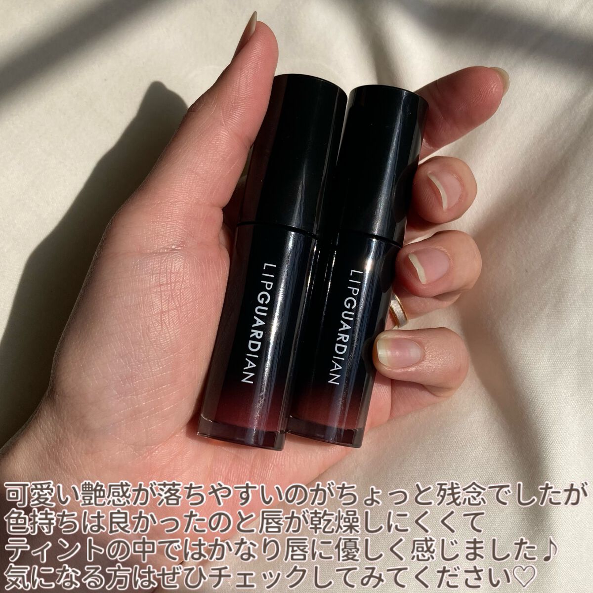 お初のリップガーディアン!とにかく色が可愛い……!王道の形のティントで塗りやすいし、落ちにくい……気がする!笑ただ、これじゃないと!みたいなポイントは今のところないかも🫠でも、王道使いやすいティントなので、万人受けすると思います🙋🏻♀️🩷#...