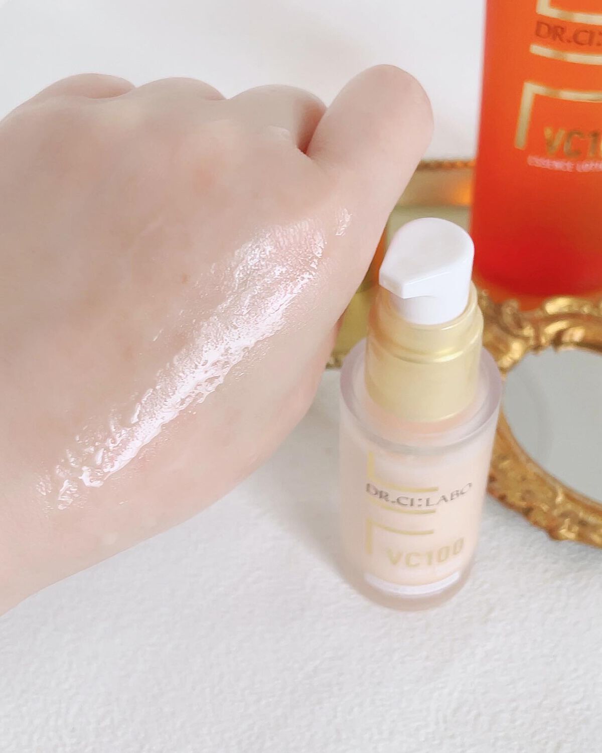 肌に潤いを与え、シミ・そばかすを防いでくもりのない肌へ導く美容液 いちごシロップみたいな見た目が好き、ビタミン12由来の色なんだそう とろみがあるけどメイク前にも使えるのがいいなと思うベタつきにくいテクスチャー