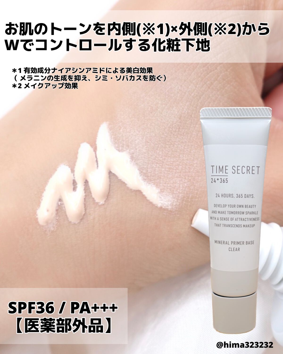 【#タイムシークレット】#ミネラル薬用プライマーベース#クリアSPF36・PA+++みなさんはなんでも合わせやすい万能下地持っていますか?プチプラでおすすめしたいのが、このタイムシークレットのミネラル薬用プライマーベースです! お肌のトーンを...
