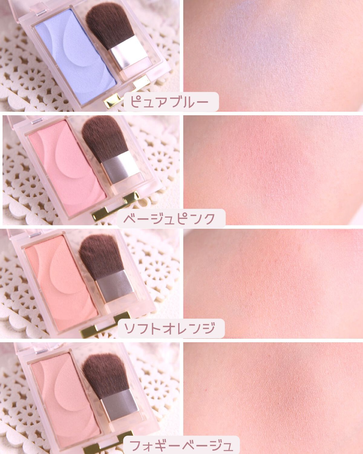 - POINT1 ほんのりと彩りを添えるソフトな発色 「素肌を活かすふんわり発色で境目なく頬になじみ、自然な立体感を演出します。 POINT2 ピタッと密着してピュアなカラーをキープ 粉っぽさのない密着パウダー処方で透明感のある仕上がりが長時間続きます。 POINT3 お肌のうるおいを守る美容液成分in セラミドNP スクワラン ホホバ種子油 オリーブ果実油(すべて保湿) POINT4 肌当たりやわらかなオリジナルブラシ付き こだわりの斜めカットのラウンド形状で、広く均一に塗りやすいブラシです。