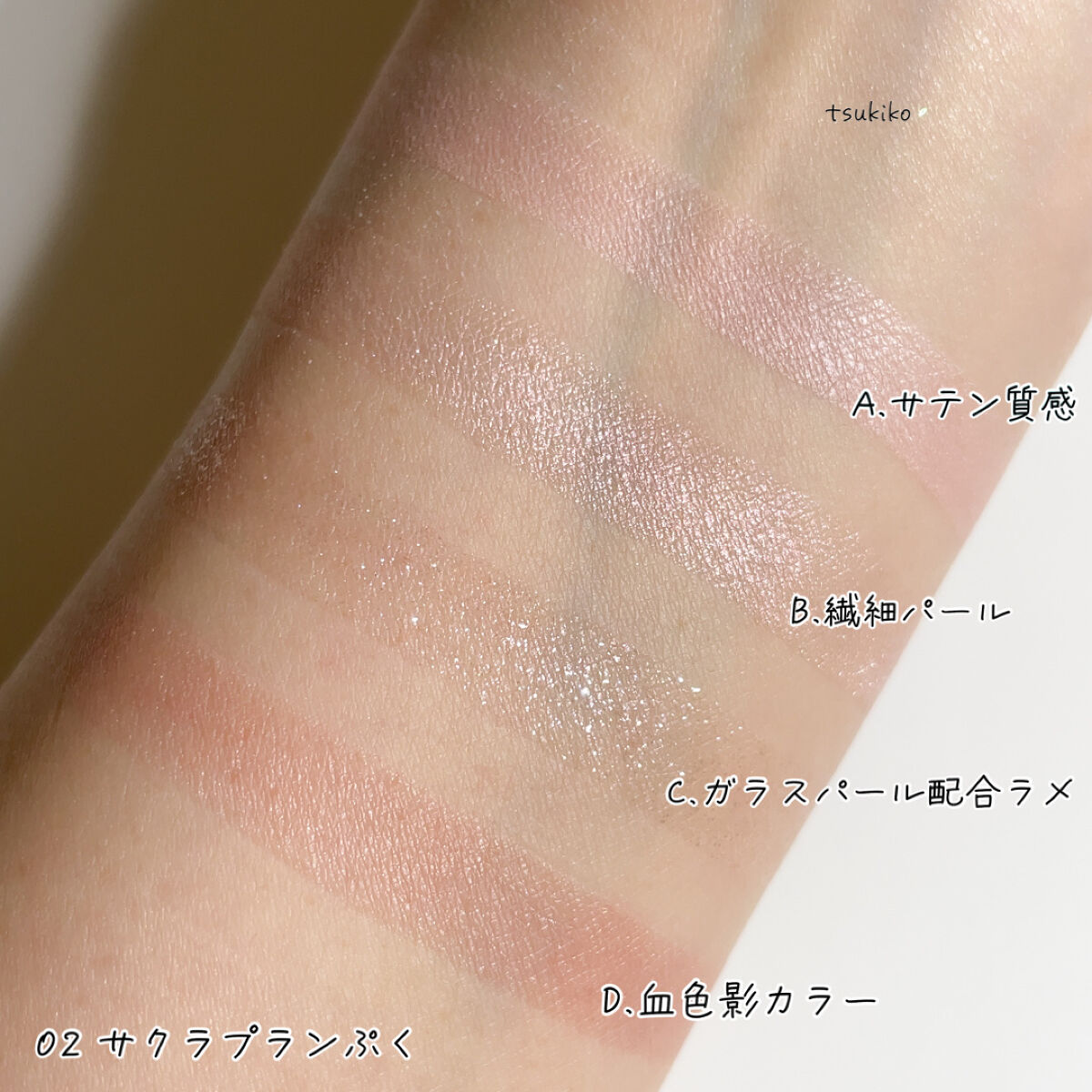 - <01 アプリコットプランぷく> 【A】合成フルオロフロゴパイト、窒化ホウ素、ステアリン酸エチルヘキシル、ジメチコン、ヘキサ(ヒドロキシステアリン酸/ステアリン酸/ロジン酸)ジペンタエリスリチル、シリカ、ジステアリン酸Al、クロルフェネシン、デヒドロ酢酸Na、水酸化Al、トコフェロール、セラミドNP、パルミチン酸レチノール、マイカ、酸化チタン、酸化鉄、赤226、グンジョウ 【B】トリ(カプリル酸/カプリン酸)グリセリル、合成フルオロフロゴパイト、ダイマージリノール酸ジ(イソステアリル/フィトステリル)、タルク、シリカ、ダイマージリノール酸ダイマージリノレイルビス(ベヘニル/イソステアリル/フィトステリル)、カルナウバロウ、クロルフェネシン、デヒドロ酢酸Na、トコフェロール、セラミドNP、パルミチン酸レチノール、マイカ、酸化チタン、酸化鉄、赤226、グンジョウ 【C】トリ(カプリル酸/カプリン酸)グリセリル、タルク、ダイマージリノール酸ジ(イソステアリル/フィトステリル)、ダイマージリノール酸ダイマージリノレイルビス(ベヘニル/イソステアリル/フィトステリル)、カルナウバロウ、シリカ、合成フルオロフロゴパイト、クロルフェネシン、デヒドロ酢酸Na、トコフェロール、セラミドNP、パルミチン酸レチノール、ホウケイ酸(Ca/Al)、マイカ、酸化チタン、酸化鉄、グンジョウ、黄4、赤226 【D】合成フルオロフロゴパイト、タルク、ジフェニルシロキシフェニルトリメチコン、窒化ホウ素、リンゴ酸ジイソステアリル、ミリスチン酸亜鉛、水添ポリイソブテン、ヘキサ(ヒドロキシステアリン酸/ステアリン酸/ロジン酸)ジペンタエリスリチル、クロルフェネシン、デヒドロ酢酸Na、トコフェロール、セラミドNP、パルミチン酸レチノール、マイカ、酸化鉄、酸化チタン、グンジョウ <02 サクラプランぷく> 【A】合成フルオロフロゴパイト、窒化ホウ素、ステアリン酸エチルヘキシル、ジメチコン、ヘキサ(ヒドロキシステアリン酸/ステアリン酸/ロジン酸)ジペンタエリスリチル、シリカ、ジステアリン酸Al、クロルフェネシン、デヒドロ酢酸Na、水酸化Al、トコフェロール、セラミドNP、パルミチン酸レチノール、マイカ、酸化チタン、酸化鉄、赤226、グンジョウ 【B】トリ(カプリル酸/カプリン酸)グリセリル、合成フルオロフロゴパイト、ダイマージリノール酸ジ(イソステアリル/フィトステリル)、タルク、シリカ、ダイマージリノール酸ダイマージリノレイルビス(ベヘニル/イソステアリル/フィトステリル)、カルナウバロウ、クロルフェネシン、デヒドロ酢酸Na、トコフェロール、セラミドNP、パルミチン酸レチノール、マイカ、酸化チタン、酸化鉄、グンジョウ、赤226 【C】トリ(カプリル酸/カプリン酸)グリセリル、タルク、ダイマージリノール酸ジ(イソステアリル/フィトステリル)、ダイマージリノール酸ダイマージリノレイルビス(ベヘニル/イソステアリル/フィトステリル)、カルナウバロウ、シリカ、合成フルオロフロゴパイト、クロルフェネシン、デヒドロ酢酸Na、トコフェロール、セラミドNP、パルミチン酸レチノール、ホウケイ酸(Ca/Al)、マイカ、酸化チタン、グンジョウ、酸化鉄、赤226 【D】タルク、合成フルオロフロゴパイト、ジフェニルシロキシフェニルトリメチコン、窒化ホウ素、リンゴ酸ジイソステアリル、ミリスチン酸亜鉛、水添ポリイソブテン、ヘキサ(ヒドロキシステアリン酸/ステアリン酸/ロジン酸)ジペンタエリスリチル、クロルフェネシン、デヒドロ酢酸Na、トコフェロール、セラミドNP、パルミチン酸レチノール、マイカ、酸化鉄、グンジョウ、赤226 <03 ミルクティプランぷく> 【A】合成フルオロフロゴパイト、窒化ホウ素、ステアリン酸エチルヘキシル、ジメチコン、ヘキサ(ヒドロキシステアリン酸/ステアリン酸/ロジン酸)ジペンタエリスリチル、シリカ、ジステアリン酸Al、クロルフェネシン、デヒドロ酢酸Na、水酸化Al、トコフェロール、セラミドNP、パルミチン酸レチノール、マイカ、酸化チタン、酸化鉄、赤226、グンジョウ 【B】トリ(カプリル酸/カプリン酸)グリセリル、合成フルオロフロゴパイト、ダイマージリノール酸ジ(イソステアリル/フィトステリル)、タルク、シリカ、ダイマージリノール酸ダイマージリノレイルビス(ベヘニル/イソステアリル/フィトステリル)、カルナウバロウ、クロルフェネシン、デヒドロ酢酸Na、トコフェロール、セラミドNP、パルミチン酸レチノール、マイカ、酸化チタン、酸化鉄、グンジョウ 【C】トリ(カプリル酸/カプリン酸)グリセリル、タルク、ダイマージリノール酸ジ(イソステアリル/フィトステリル)、ダイマージリノール酸ダイマージリノレイルビス(ベヘニル/イソステアリル/フィトステリル)、シリカ、カルナウバロウ、合成フルオロフロゴパイト、クロルフェネシン、デヒドロ酢酸Na、トコフェロール、セラミドNP、パルミチン酸レチノール、ホウケイ酸(Ca/Al)、マイカ、酸化チタン、酸化鉄、酸化スズ 【D】タルク、合成フルオ