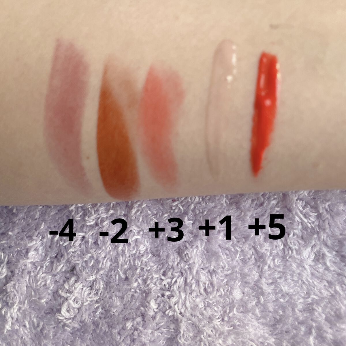 リップ自体の色見た時はダークカラーで難しそうと思ったんですが付けてみると暗めな青みピンクこの中で1番好きな色でした🎀 ブラウンリップというよりオレンジ コーラルピンクで今からの季節にピッタリ ほとんど色は付かなく、見た目や着け心地はスースー感はないですがマキシマイザーやViseeのプランパー似 赤みが強めなオレンジですがそんなにハッキリ唇に色はのらない印象 UZUのリップは全く使ったことなかったんですが全色塗り直ししても唇あれすること無く使えたのでめちゃくちゃ感動しました💐