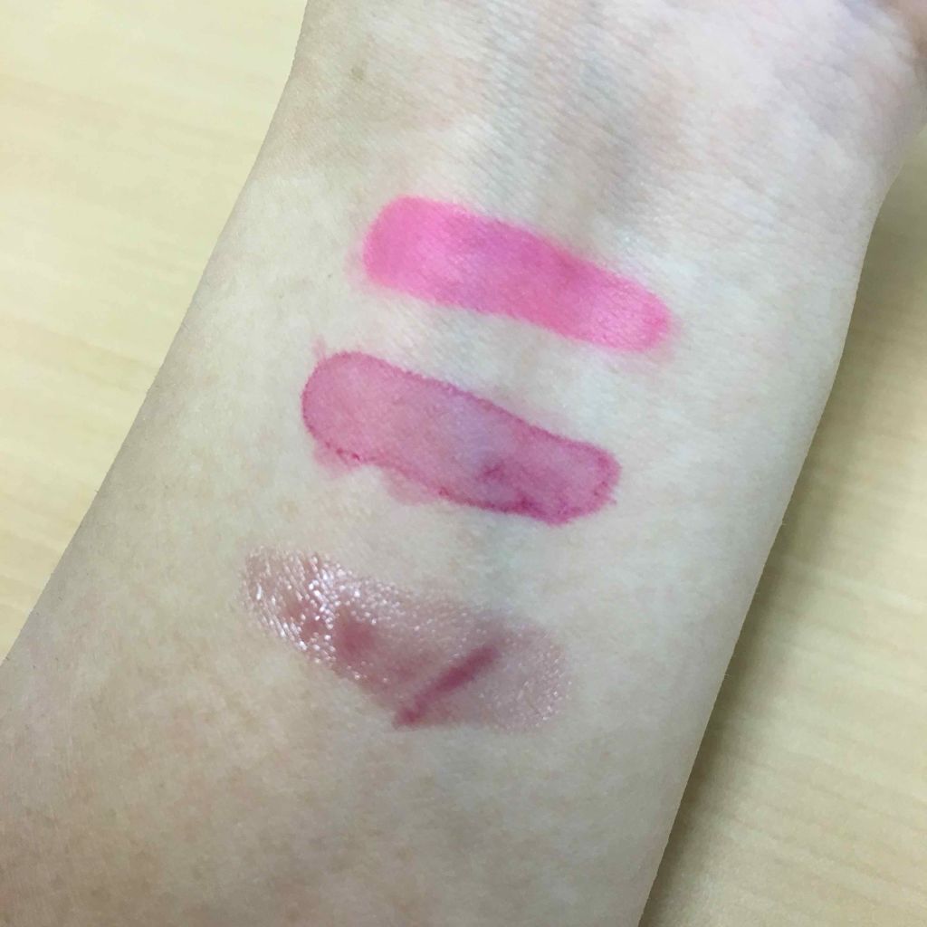 さらっとしたオイルでベタつかずツヤツヤな仕上がり✨ 色んな色があってどれもかわいい〜😍 03,04,08は水分に反応して色が変わるとのことで確かにスウォッチ直後より数秒あとのほうが色が濃くなってた! トリートメント効果が高いから寝る前のリップケアにもおすすめなんだって〜🤩