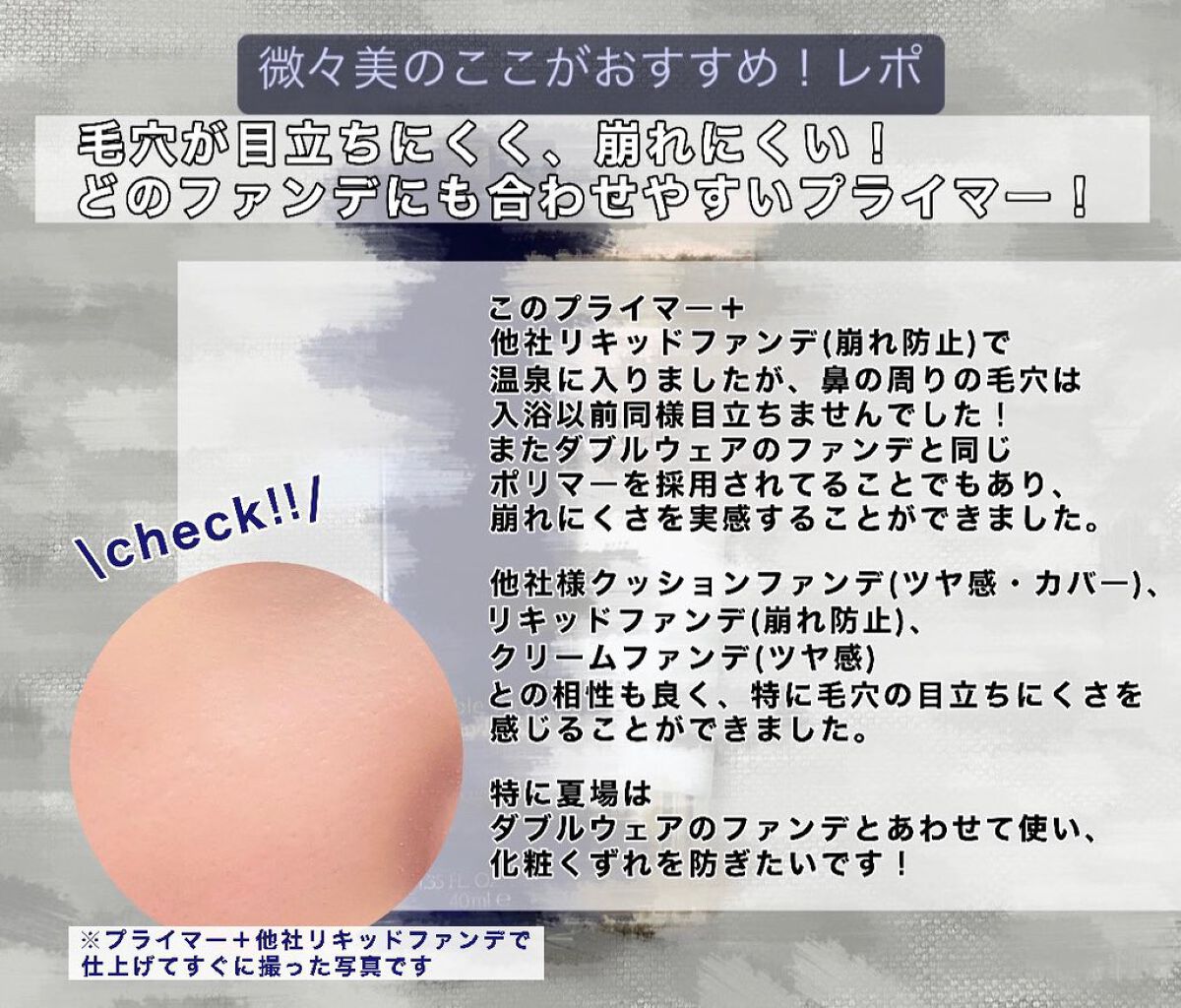 | 密着して崩れにくく、自然なツヤが出る◎ まさにファンデーションのためのプライマー! | 詳細を見る | |