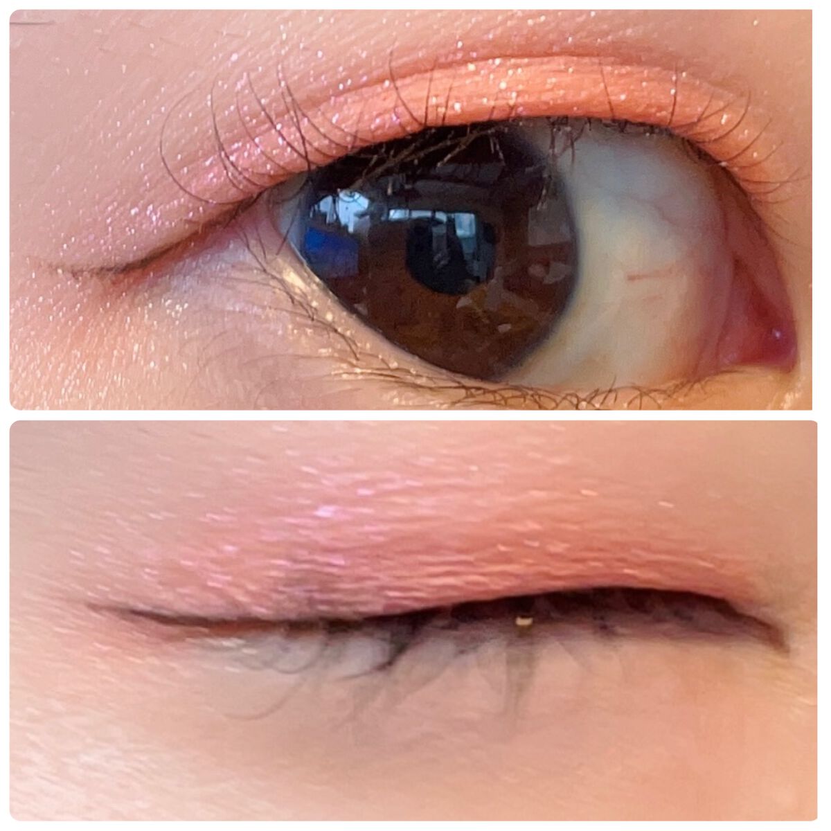 エーメイクは動画クリエイター「くれいじーまぐねっと」浅見めいさんプロデュースのコスメブランドだよ☺️ 速乾タイプだから瞼につきにくい◎ こすれにくくにじみに強いところもよかった 「ヌード」はベージュグリッターにホワイト&ピンクをMIXしたカラー 肌なじみがよく、ナチュラルな仕上がり!!