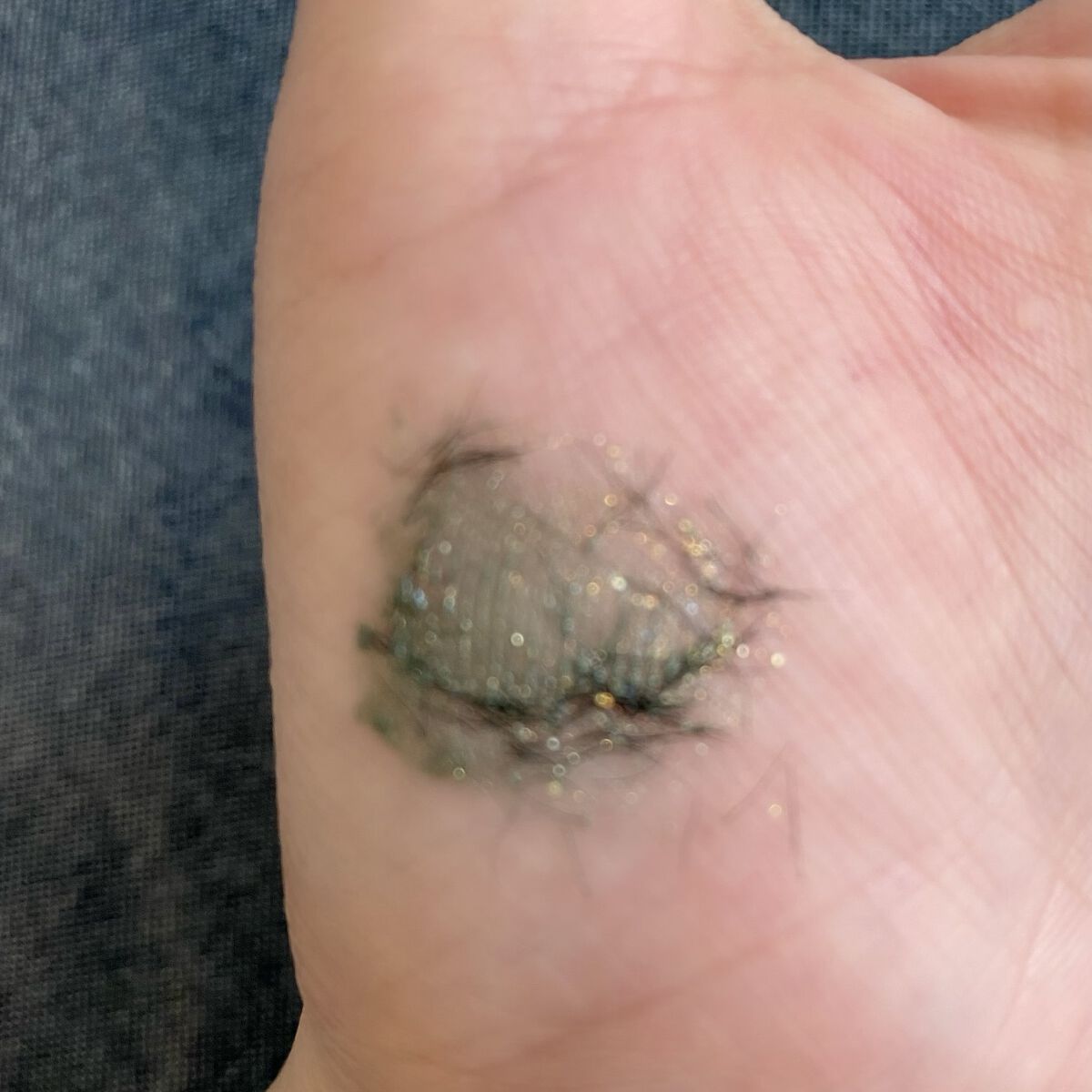 上まぶたはグリーンを二重幅に広げ、ゴールドを上から重ねてブレンディングブラシでぼかし、シルバーを指で乗せる。 シルバーのラメがとっても綺麗で思ったよりも使いやすい色です🥰 華やかなメイクがしたい時にぴったりです✨