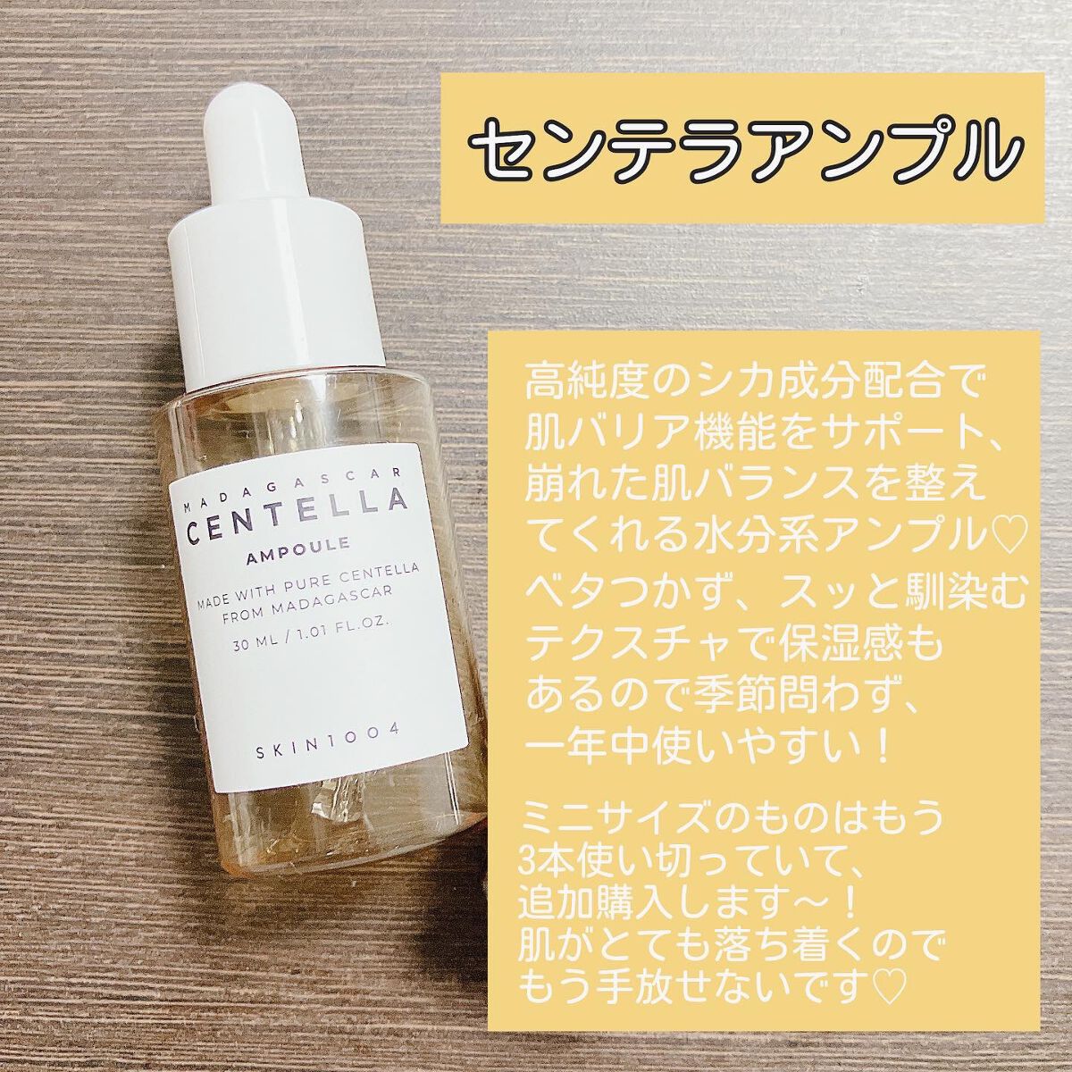 年中愛用し続けているセンテラアンプル🤍 乾燥が気になる時から肌荒れの時にも使いやすく、1軍スキンケアとして頼りにしています🌱 まるで水のようなサラッとしたテクスチャー💧 スーッと肌になじんでいきます👌🏻肌なじみが良すぎて驚くほど✨ マダガスカル産ツボクサエキス(保湿成分)100%配合されているそう🌿 鎮静ケアとして頼りになる成分なんだそう🥀