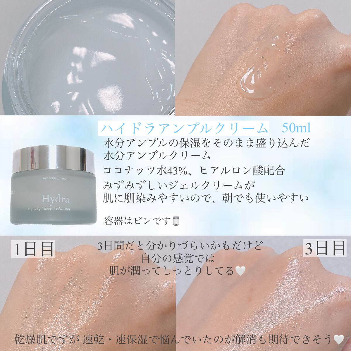 速攻水分チャージ💧8重複合ヒアルロン酸、プロバイオティクス、ココナッツ水51.7%配合。とにかく保湿重視の方におすすめ!とろみのある透明の美容液。のびがよく肌に馴染ませるとすーっと浸透します♡浸透力はいいです。つけた瞬間肌が手に吸い付くように...