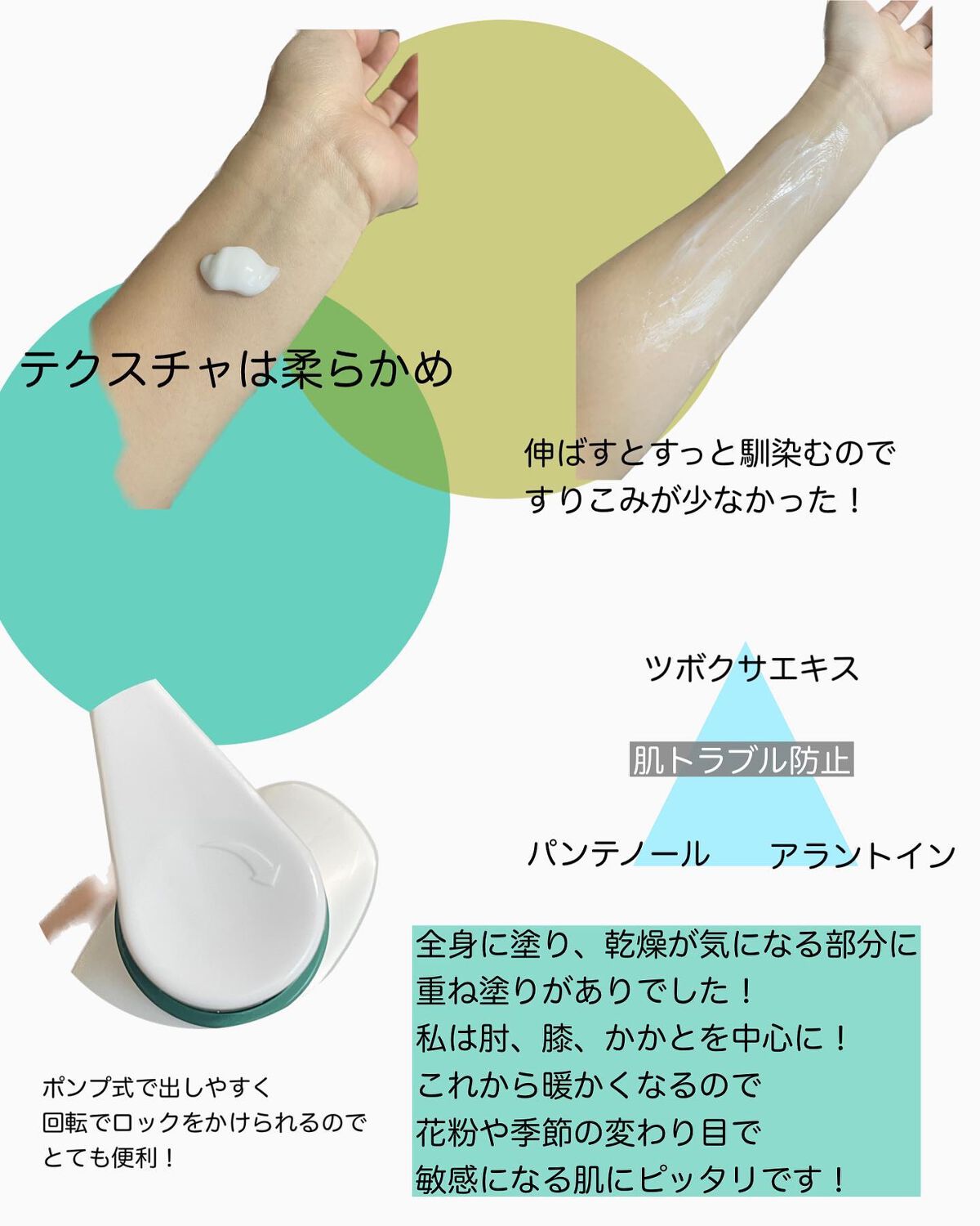 - <250mL> 水、グリセリン、トリ(カプリル酸/カプリン酸)グリセリル、ジメチコン、セタノール、パルミチン酸イソプロピル、ワセリン、ラウリン酸グリセリル、ステアリルアルコール、パルミチン酸、ステアリン酸、シア脂、安息香酸アルキル(C12-15)、ヒドロキシアセトフェノン、カプリリルグリコール、クロルフェネシン、パンテノール、水酸化Na、(アクリレーツ/アクリル酸アルキル(C10-30))クロスポリマー、ジステアリルジモニウムクロリド、アラントイン、テトラ(ジ-t-ブチルヒドロキシヒドロケイヒ酸)ペンタエリスリチル、BG、カルボマー、ツボクサエキス <450mL> 水、グリセリン、トリ(カプリル酸/カプリン酸)グリセリル、ジメチコン、セタノール、パルミチン酸イソプロピル、ワセリン、ラウリン酸グリセリル、ステアリルアルコール、パルミチン酸、ステアリン酸、シア脂、安息香酸アルキル(C12-15)、ヒドロキシアセトフェノン、カプリリルグリコール、クロルフェネシン、パンテノール、水酸化Na、(アクリレーツ/アクリル酸アルキル(C10-30))クロスポリマー、ジステアリルジモニウムクロリド、アラントイン、テトラ(ジ-t-ブチルヒドロキシヒドロケイヒ酸)ペンタエリスリチル、BG、カルボマー、ツボクサエキス <950mL> 水、グリセリン、トリ(カプリル酸/カプリン酸)グリセリル、ジメチコン、セタノール、パルミチン酸イソプロピル、ワセリン、ラウリン酸グリセリル、ステアリルアルコール、パルミチン酸、ステアリン酸、シア脂、安息香酸アルキル(C12-15)、ヒドロキシアセトフェノン、カプリリルグリコール、クロルフェネシン、パンテノール、水酸化Na、(アクリレーツ/アクリル酸アルキル(C10-30))クロスポリマー、ジステアリルジモニウムクロリド、アラントイン、テトラ(ジ-t-ブチルヒドロキシヒドロケイヒ酸)ペンタエリスリチル、BG、カルボマー、ツボクサエキス <450ml+250ml> 水、グリセリン、トリ(カプリル酸/カプリン酸)グリセリル、ジメチコン、セタノール、パルミチン酸イソプロピル、ワセリン、ラウリン酸グリセリル、ステアリルアルコール、パルミチン酸、ステアリン酸、シア脂、安息香酸アルキル(C12-15)、ヒドロキシアセトフェノン、カプリリルグリコール、クロルフェネシン、パンテノール、水酸化Na、(アクリレーツ/アクリル酸アルキル(C10-30))クロスポリマー、ジステアリルジモニウムクロリド、アラントイン、テトラ(ジ-t-ブチルヒドロキシヒドロケイヒ酸)ペンタエリスリチル、BG、カルボマー、ツボクサエキス